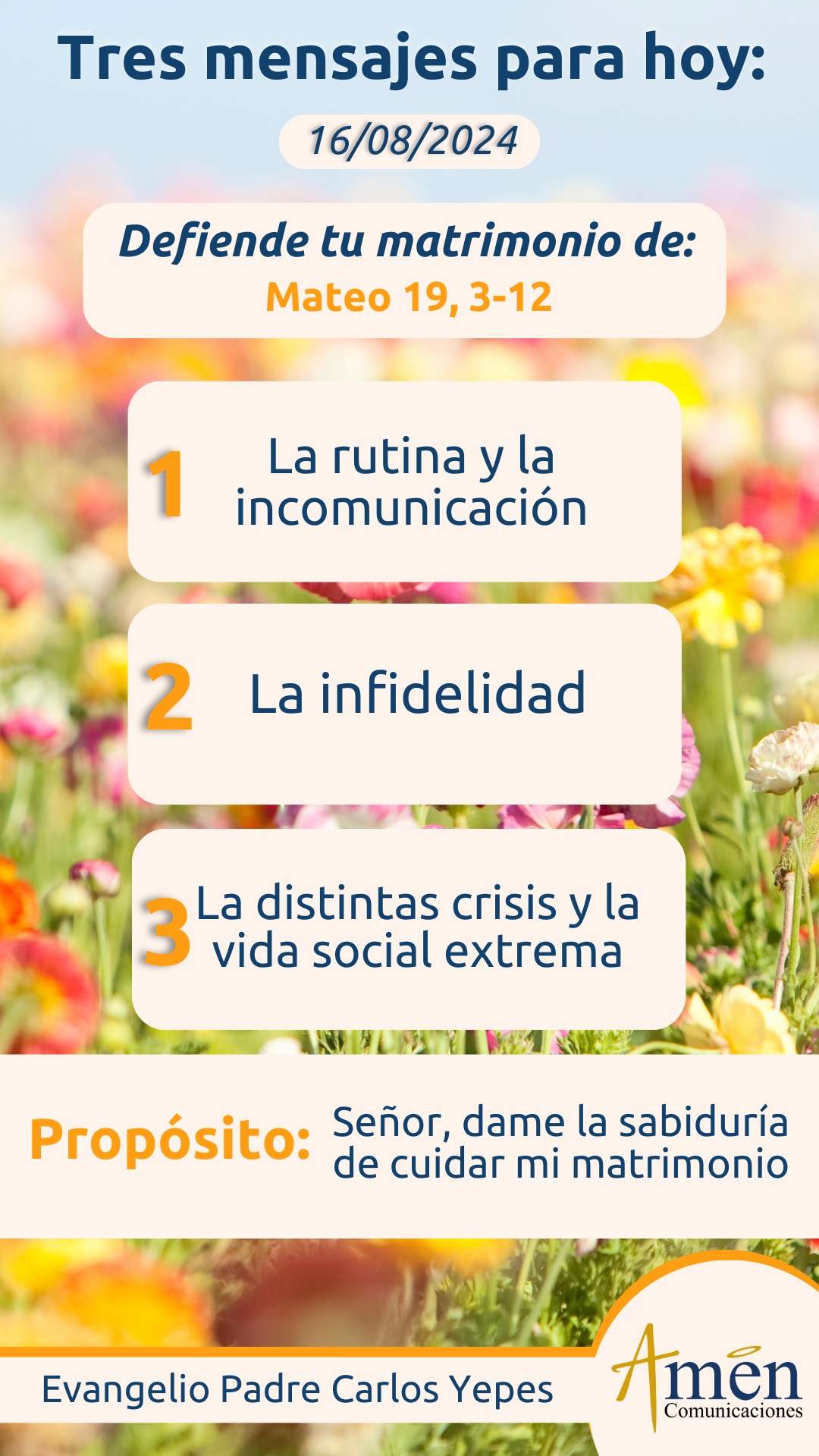 Por aquellos llamados caprichos de la liturgia, compartimos un evangelio cuyo texto había salido justo hace una semana, pero siempre habrá nuevas enseñanzas, nuevas luces para descubrir lo que el Señor quiere hablar en nuestra vida. En un diálogo de los fariseos que, para poner a prueba a Jesús, le preguntan: ¿Si es lícito repudiar, rechazar a una mujer por cualquier motivo?, y se enfrascan en el tema del adulterio y de cómo deben ser una sola carne, hombre y mujer, quisiera hoy compartir contigo, una reflexión a propósito de que muchos matrimonios hoy día se separan, se divorcian, se destruyen, porque no batallaron con fuerza la esencia del matrimonio que es el amor humano. La vida nos enseña que todo lo que lo que vale la pena cuesta: el amor esponsal, el amor familiar, el amor de amistad; si no fuera importante en la vida, no costaría sostenerlo. Pero ese amor vive batallas, combates, luchas, dificultades, y hoy te quiero presentar cinco grandes batallas del amor matrimonial que sin ser las únicas son muy universales y tienes que conocerlas y precaverte si están aconteciendo en tu vida de pareja, para poder conjurar esa dificultad, ese desánimo, el no querer luchar más por tu relación, querer tirar la toalla.