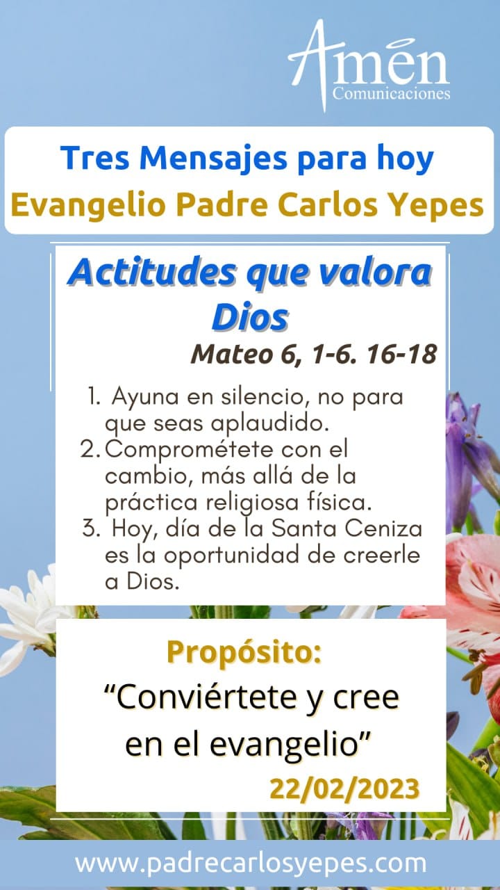 Y finalmente, además de la cruz como signo, además de la ceniza como material, recuerda las palabras que te dice el sacerdote: “Conviértete y cree en el evangelio”, traduzcamos esta expresión simplemente diciendo, cambia de vida y créele a Jesús. Conviértete y cree en el evangelio no es nada distinto si no cambia de vida y créele a Jesús.