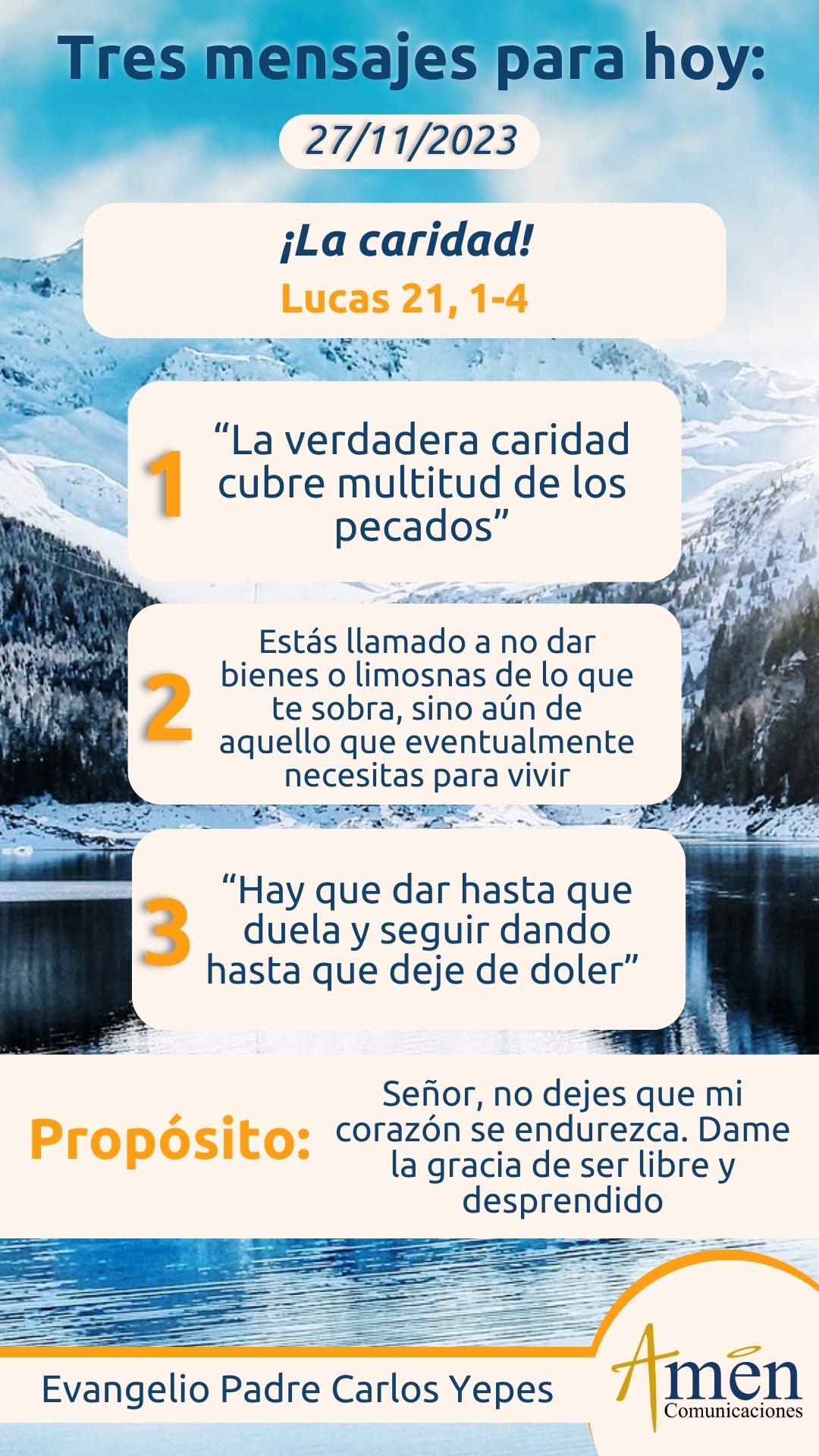 Pero hay una segunda sabiduría tal vez más poderosa, estamos llamados a no dar bienes o limosnas de lo que nos sobra, sino aún de aquello que eventualmente necesitamos para vivir. La Madre Teresa de Calcuta, calcó magistralmente esta necesidad y este sentimiento de una auténtica caridad, afirmando: “Hay que dar hasta que duela y seguir dando hasta que deje de doler”. Es que cuando duele dar a los demás, es porque en el fondo estamos muriendo, sí, muriendo a nuestro egoísmo, muriendo a nuestra codicia de posesiones materiales, abriéndonos a un auténtico espíritu de generosidad y caridad, al mejor ejemplo, al mejor estilo de Jesús.