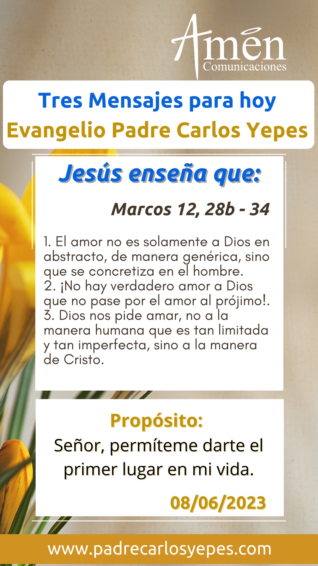 Es bello el mensaje que hoy se nos plantea y más bella la luz que Jesús da no solamente al escriba que le pregunta, sino a todos nosotros. Aprendamos esta sabiduría, darle a Dios el primer lugar en nuestra viday con seguridad sufriremos menos, viviremos mejor.