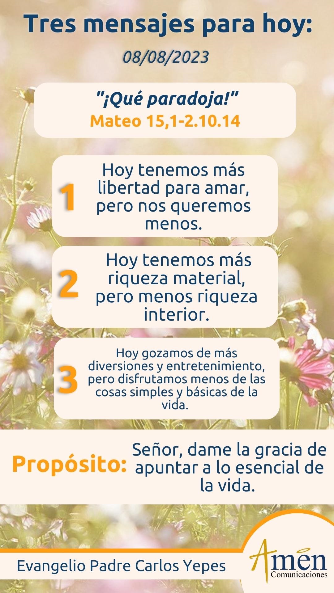 El evangelio, y una discusión estéril sobre lavarse las manos antes de comer o pensar que es lo que viene de afuera lo que nos contamina y nos hace impuros, muestra claramente la libertad de Jesús, frente a los formalismos, ritos y exterioridades del mundo judío de su tiempo, y nos invita a mirar lo esencial, lo fundamental en la vida.