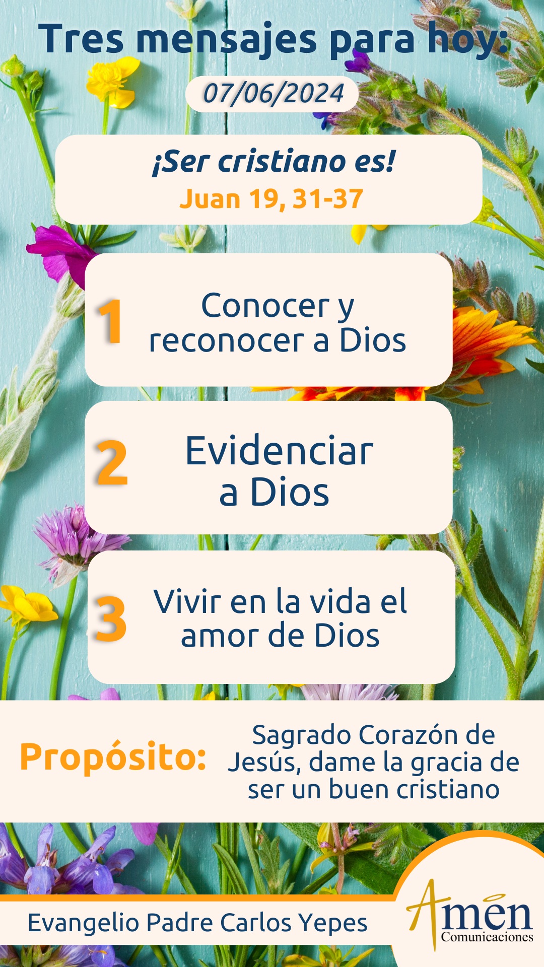 Hoy te invito para que medites en esta expresión tan bella: “el amor de Dios, y es lo que nos hace sentirnos verdaderamente cristianos e hijos del Padre, un amor gratuito, eterno, fiel, misericordioso, crucificado, y es más allá de las pruebas, de los momentos de caídas, de momentos de desánimo recuerda, que Dios está contigo y que su amor es como el sol que nunca te faltará”.