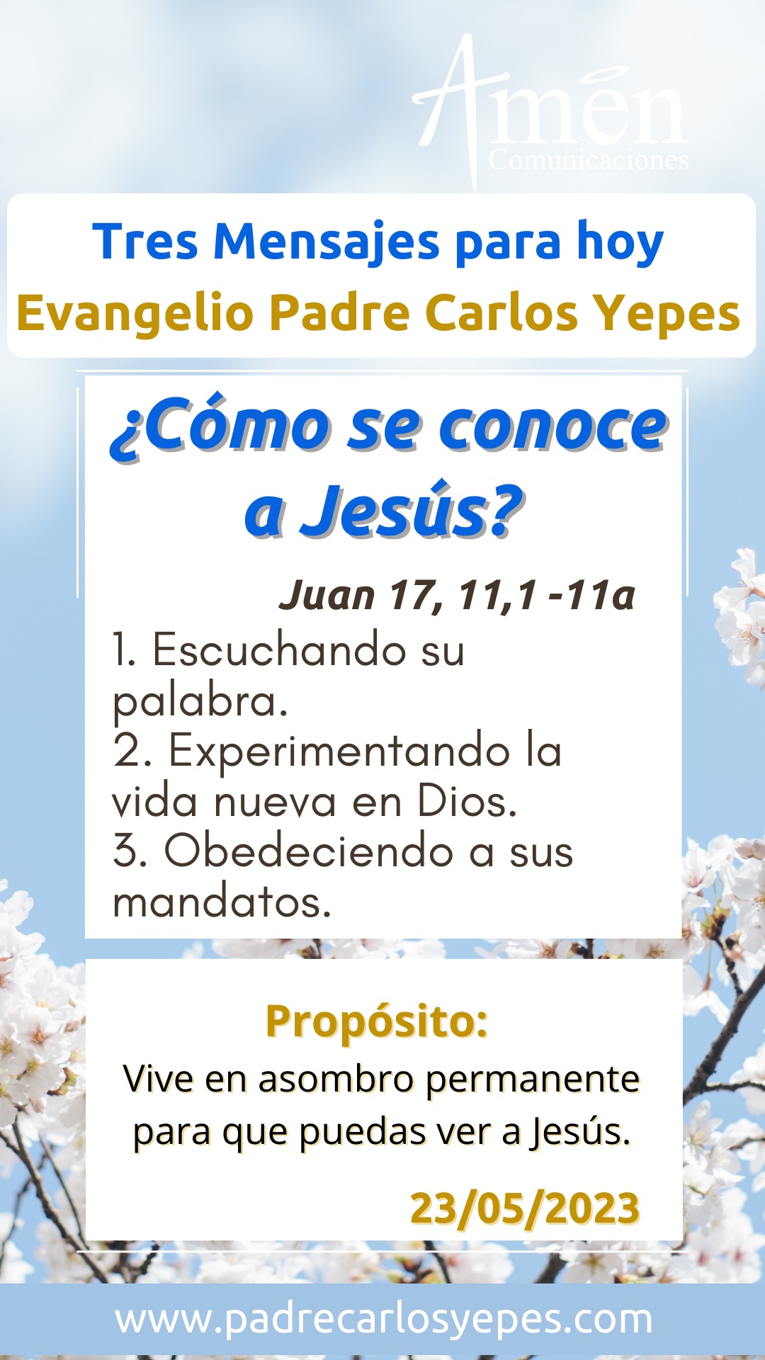 Pero en un segundo momento encontramos, que Jesús define entre líneas y a veces se nos pasa porque lo leemos de largo, lo que es la vida con Dios, la vida en plenitud, la vida abundante que Él llama la vida eterna y la define así: “Esta es la vida eterna, que te conozcan a ti, único Dios verdadero, y a tu enviado Jesucristo”. El conocer, el verbo conocer en la Biblia, no es ni siquiera cercano al verbo conocer de los griegos, que entendemos perfectamente en el mundo de occidente, el conocer griego y en occidente es un conocer intelectivo, pero para un hombre semita, un hombre de la Biblia, un hombre de oriente, el conocer significa experimentar.