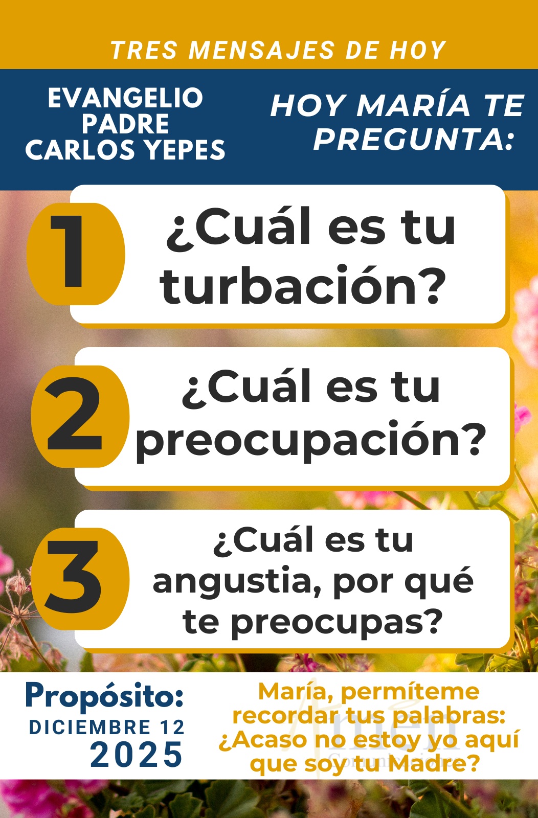 En efecto, le dirá María ¿por qué te turbas, por qué te preocupas hijito mío?, ¿acaso no estoy yo aquí que soy tu Madre? Hoy, casi 500 años después, el eco de las palabras de María retumba en nuestros corazones y nos dice ¿cuál es tu turbación?, ¿cuál es tu preocupación?, ¿cuál es tu angustia en este día?, ¿por qué te preocupas? ¿Acaso no estoy yo aquí que soy tu Madre?