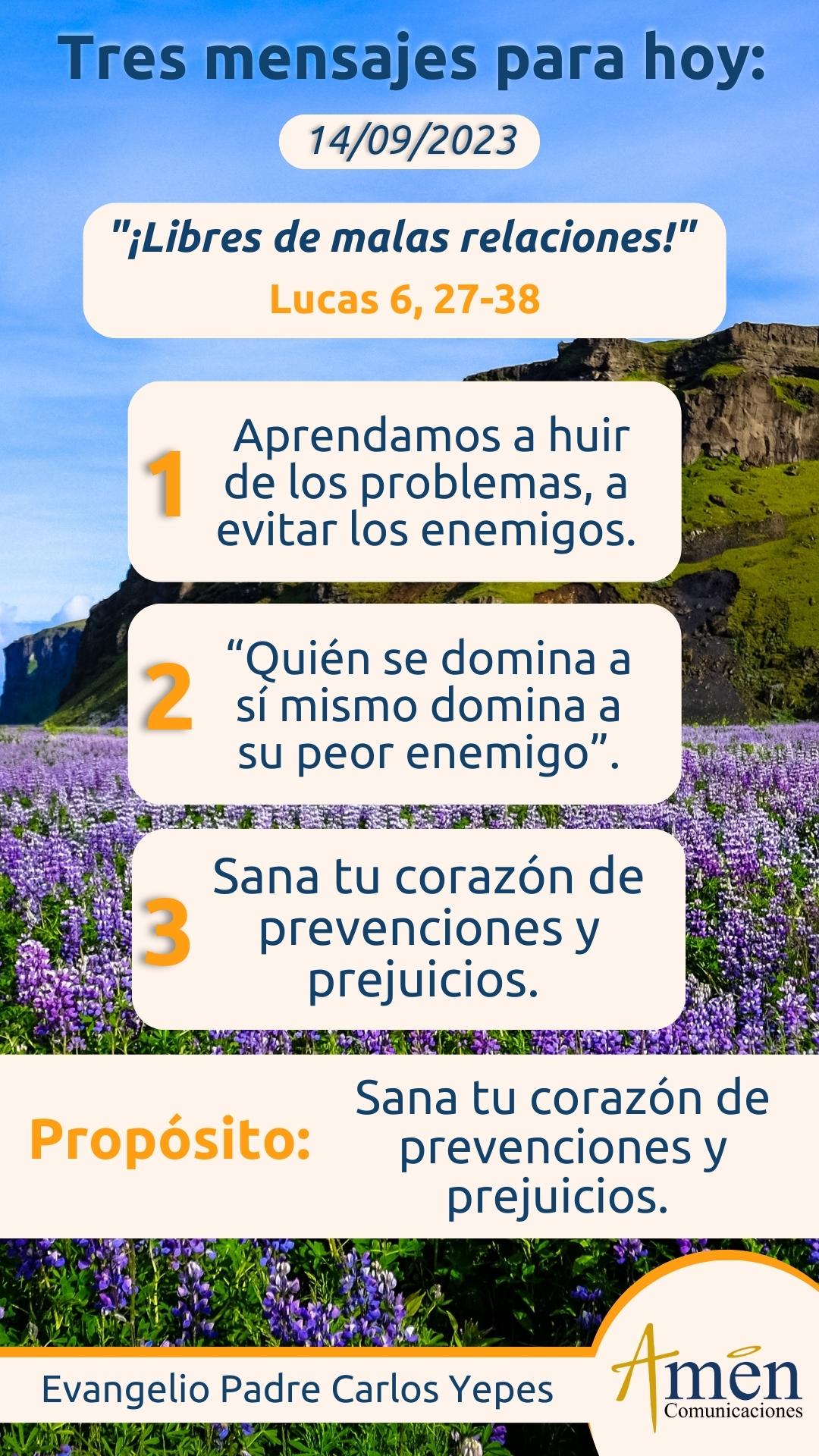 Que el Señor te bendiga abundantemente en este día y te ayude a sanar heridas en tu corazón, sobre todo frente a tu familia y las personas que has querido, y te bendecimos en el nombre del Padre y del Hijo y del Espíritu Santo. Amén.