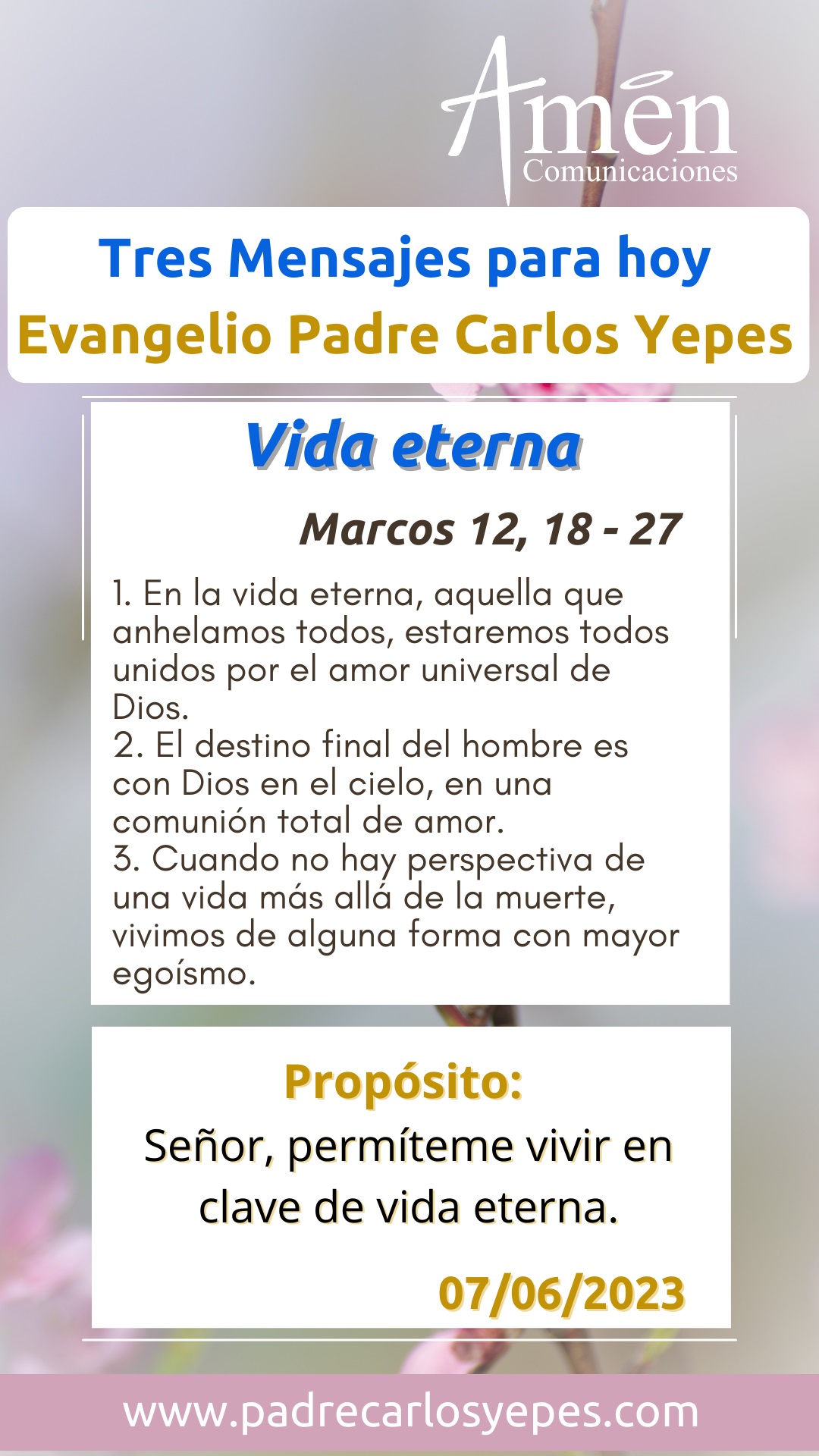 Cuando no hay perspectiva de una vida más allá de la muerte, vivimos de alguna forma con mayor egoísmo, entendiendo que la existencia es solo esta y que tenemos que disfrutar al máximo porque con la muerte supuestamente todo acabará. Pero, por el contrario, cuando Jesús hoy nos dice están muy equivocados, sí hay vida eterna, y no será una vida simplemente en unión conyugal o marital como en el mundo terrenal, sino que seremos como ángeles en una comunión de amor eterno con Dios, aprendes a vivir tu vida de otra manera.