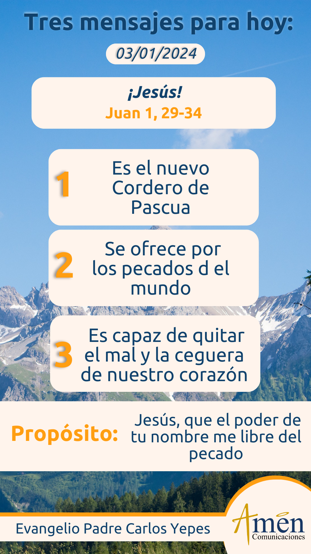 | dc.description | TRANSLITERACIÓN REFLEXIÓN PADRE CARLOS YEPES Desde tiempos muy antiguos, en un día como hoy, la Iglesia celebra, la memoria del Santísimo Nombre de Jesús. Efectivamente, y como nos dice el evangelio de san Mateo, capítulo 1, versículo 21: “El nombre de Jesús significa, Dios salva”. Y es que en el fondo nos salva, no de nuestras crisis económicas, de nuestros problemas de salud, de nuestras soledades; sino que nos salva de la mayor esclavitud, la más dolorosa tragedia que hay en la vida personal, el pecado. Ese Santísimo nombre de Jesús, invocado con confianza, nos ofrece ayuda en nuestras necesidades espirituales, según la misma promesa de Cristo: “En mi nombre expulsarán demonios, hablarán en lenguas nuevas, agarrarán serpientes en sus manos, y aunque beban un veneno mortal, no les hará daño, impondrán las manos sobre los enfermos y se pondrán bien”. Según nos recuerda el capítulo 16 de san Marcos, en los versículos 17 y 18. Pero hablemos del evangelio que hoy nos presenta la liturgia; y reconocemos a Juan el Bautista, que presenta a Jesús, con una preciosa y profunda expresión, llama a Jesús: “El Cordero de Dios que quita el pecado del mundo”. En efecto, Jesús es el nuevo Cordero de Pascua, Jesús es el nuevo cordero inmolado, es el ser indefenso, el ser inocente como un cordero, que se ofrece por los pecados de todos nosotros, que es capaz de quitar el mal, la ceguera, la ignorancia, de alguna manera la incapacidad para reconocer la verdad que hay en el corazón humano. Sólo en Cristo, y ese es el gran anuncio de Juan el Bautista, sólo en ese Niño que nos ha nacido recientemente, y así lo hemos celebrado en la liturgia el día de Navidad, el hombre, la mujer de todos los tiempos, encuentra sabiduría, conocimiento para salir de su ignorancia, luz para conjurar las tinieblas, libertad para romper las cadenas que esclavizan su ser interior. Luego dirá Juan el Bautista: “Que sobre Él, sobre Jesús, se posará el Espíritu Santo en forma de paloma”. Y es precisamente el bautismo que viene a traer Jesús, un bautismo en la vida nueva de Dios, no es solamente un bautismo en agua para purificación, como lo hacía Juan el Bautista; es un bautismo en el Espíritu Santo, para que nosotros seamos consagrados a Dios, Uno y Trino. Que toda la vida, que todo el fuego, que toda la fuerza de Dios, se nos comunique por el bautismo que nos hace hombres nuevos, muertos a nuestro pecado y nacidos, renacidos mejor, a una vida nueva en Dios. Hoy es una oportunidad, para que des gracias al Señor, por sentirte cristiano, da gracias al Señor por el día en que fuiste bautizado, y pidámosle a Él, que esa renovación de nuestra vida, que se dio justo por el sacerdote que nos entregó las aguas bautismales, que la derramó sobre nosotros, se opere en nuestra vida, dí a ti mismo: soy un hombre, soy una mujer nuevos, por la fuerza del bautismo que de niño recibí en mi vida pasada. Señor, soy tuyo, mis deseos son tuyos, mis sentimientos son tuyos, mis palabras y mis acciones son tuyas, Señor, quiero este año vivir consagrado a tu voluntad, así estaré seguro de recibir siempre tu bendición. Y con estos sentimientos, recién empezado este año, te bendecimos, en el nombre del Padre y del Hijo y del Espíritu Santo. Amén. | |