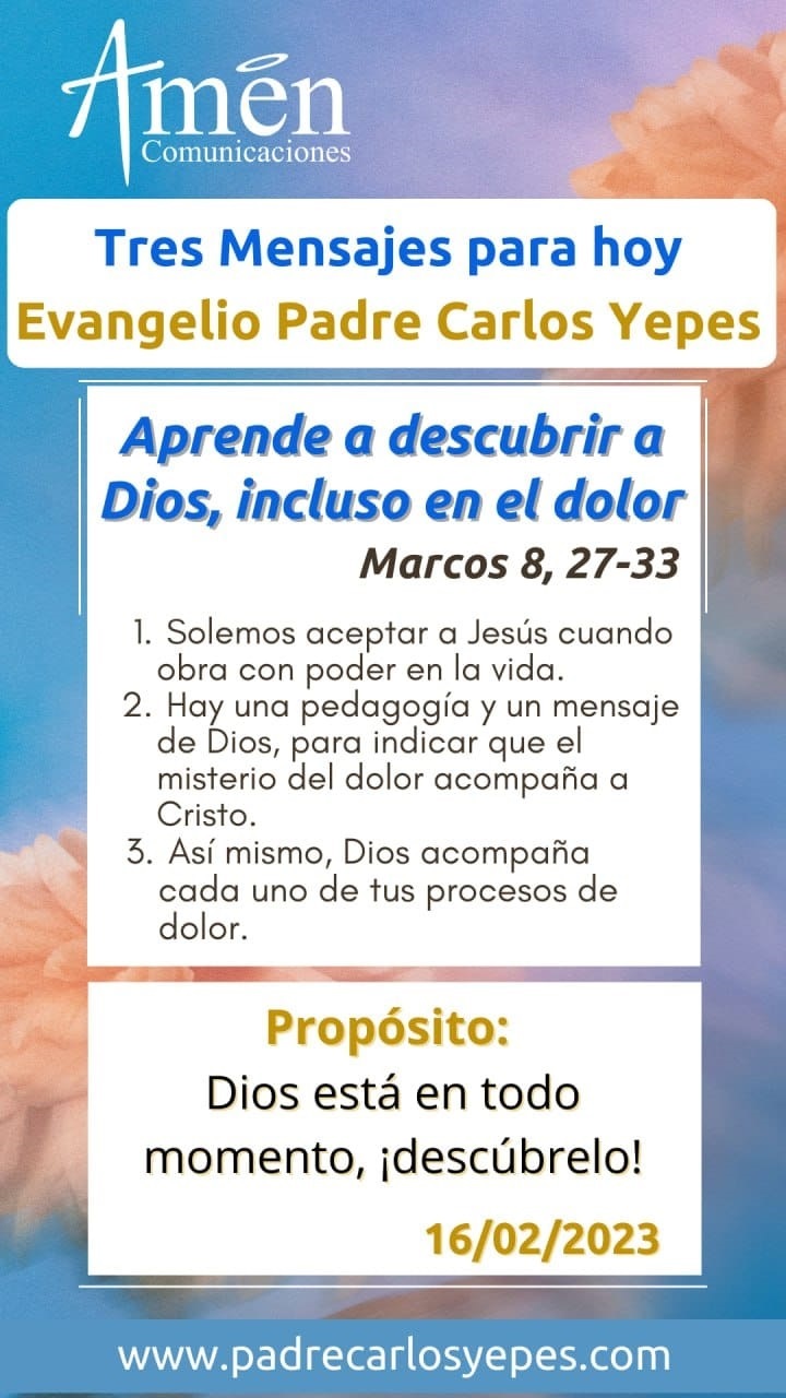Lo que llama la atención de este Evangelio, es que el apóstol Pedro se escandaliza, frente al misterio del dolor y del sufrimiento que anuncia Jesús, él no lo puede aceptar. La reprimenda, el regaño de Jesús, no puede ser más claro, increpa a Pedro diciéndole: “¡Quítate de mí vista satanás!, tú piensas como los hombres, no como Dios”. ¿Qué enseñanzas pudiéramos sacar de este Evangelio para nuestra vida?