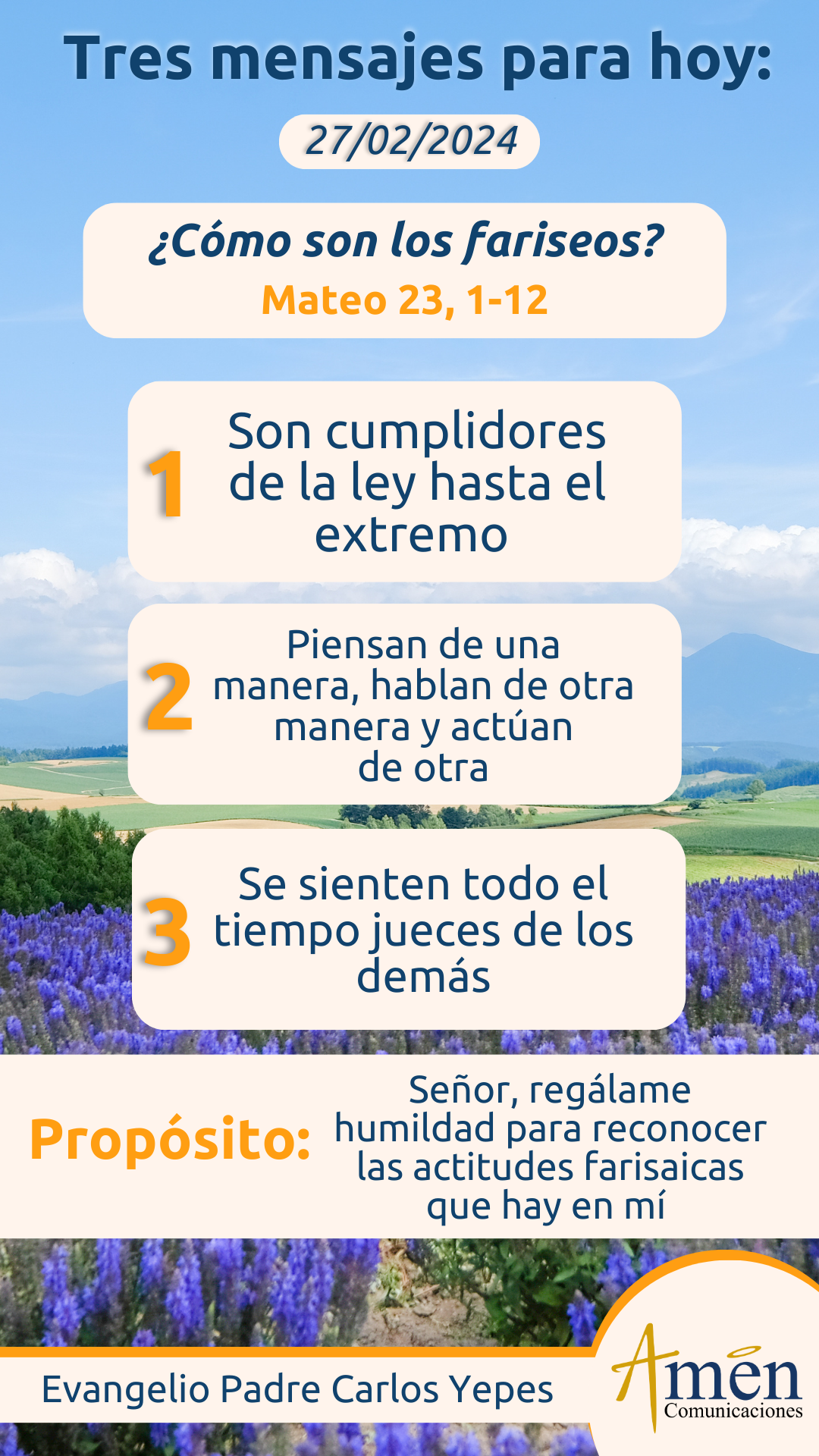 No encontramos en todos los evangelios, un capítulo más cáustico, más ácido, más crítico y más fuerte contra los fariseos, que el capítulo 23 del evangelista según san Mateo. Es que Jesús, ese gran sabio, ese profeta, ese mesías salvador que pasó por la tierra hace 2000 años, amó al pecador, amó a los pobres, amó a los enfermos, amó a los discípulos, amó a su familia, amó a los niños, a los pequeños de corazón; pero nunca pudo tragarse completamente a los fariseos de su tiempo, aquellos que eran una casta socioreligiosa que fungían como hombres sabios, piadosos y buenos, pero estaban cerrados en su corazón. El fariseísmo que es una expresión muy de la cultura religiosa de hace 2000 años, pero que ha hecho carrera en 20 siglos; lo asociamos con un tipo de comportamientos humanos y de actitudes del corazón, que podemos sintetizar en cinco grandes descripciones, los fariseos de ayer, los fariseos de hoy, los fariseos de siempre.
