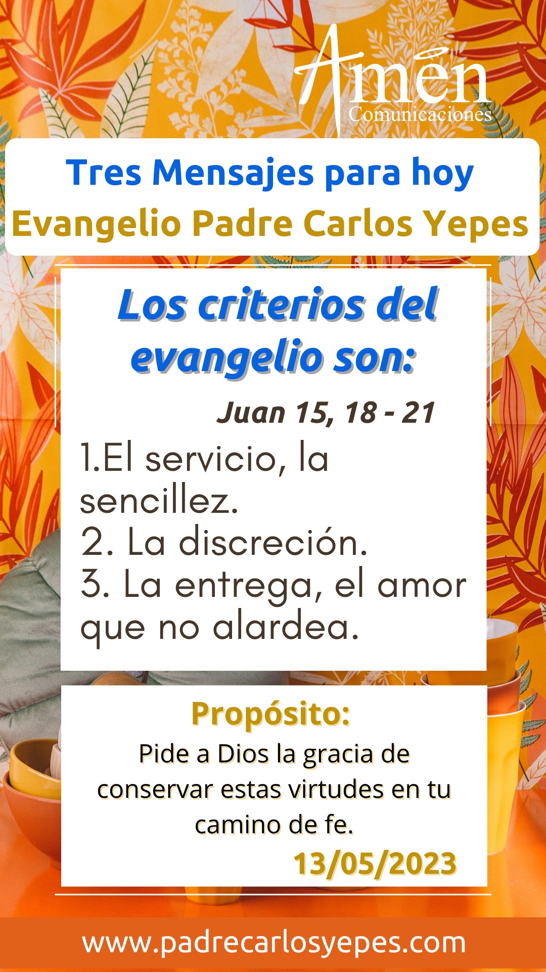 Los criterios del evangelio son el servicio, la sencillez, la discreción, la entrega, el amor que no alardea; por eso el mundo no nos comprende, y Jesús lo enuncia en la primera parte del evangelio que hoy hemos contemplado; de hecho, afirma: “Si fueran del mundo, el mundo los amaría como cosa suya, pero no son del mundo”. Nos equivocamos, si como cristianos pretendemos conquistar personas del mundo, utilizando sus mismas categorías o claves de éxito humano, de preeminencia sobre los demás, de aparentar lo que no somos.