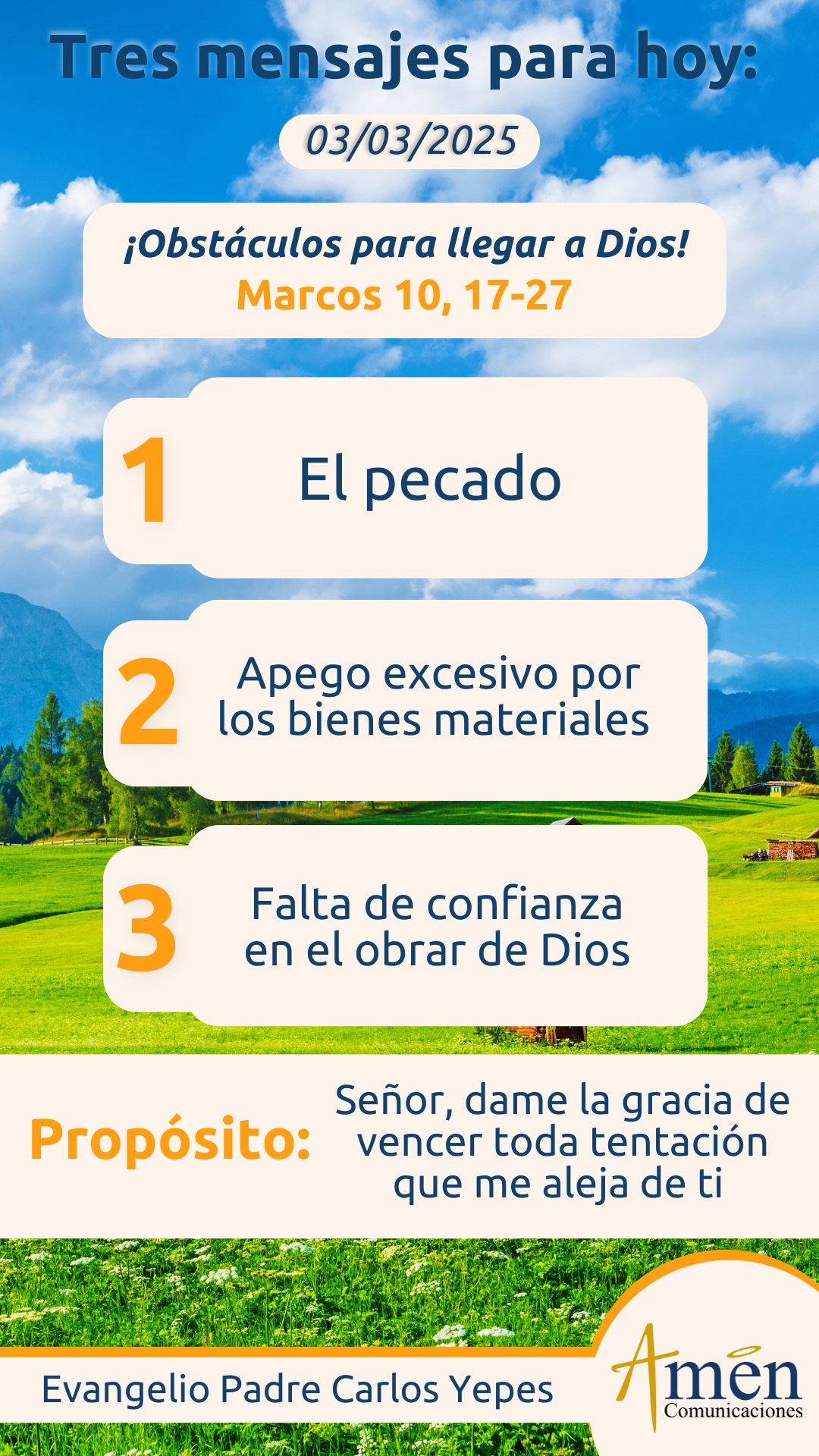 Y ahora, en un tercer momento, en el evangelio de hoy, se nos presenta la figura del hombre rico que quiere seguir a Jesús, pero por las riquezas que tiene no es capaz de romper con ellas y se vuelven una verdadera atadura que lo llevan con tristeza a alejarse de Dios.