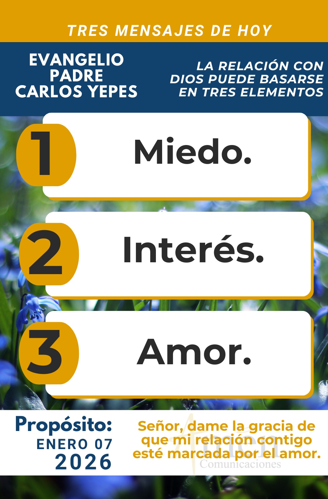 Pero viene la tercera relación, la única sana, la única relación valiosa y la que nos propone san Juan en su primera carta. La relación fundamental con Dios no debe ser basada en el miedo o en el interés, sino en el amor. Sentirnos amados por Él desecha el temor, sentirnos amados por Dios nos lleva a la plenitud del amor en las relaciones interpersonales, en los afectos humanos.