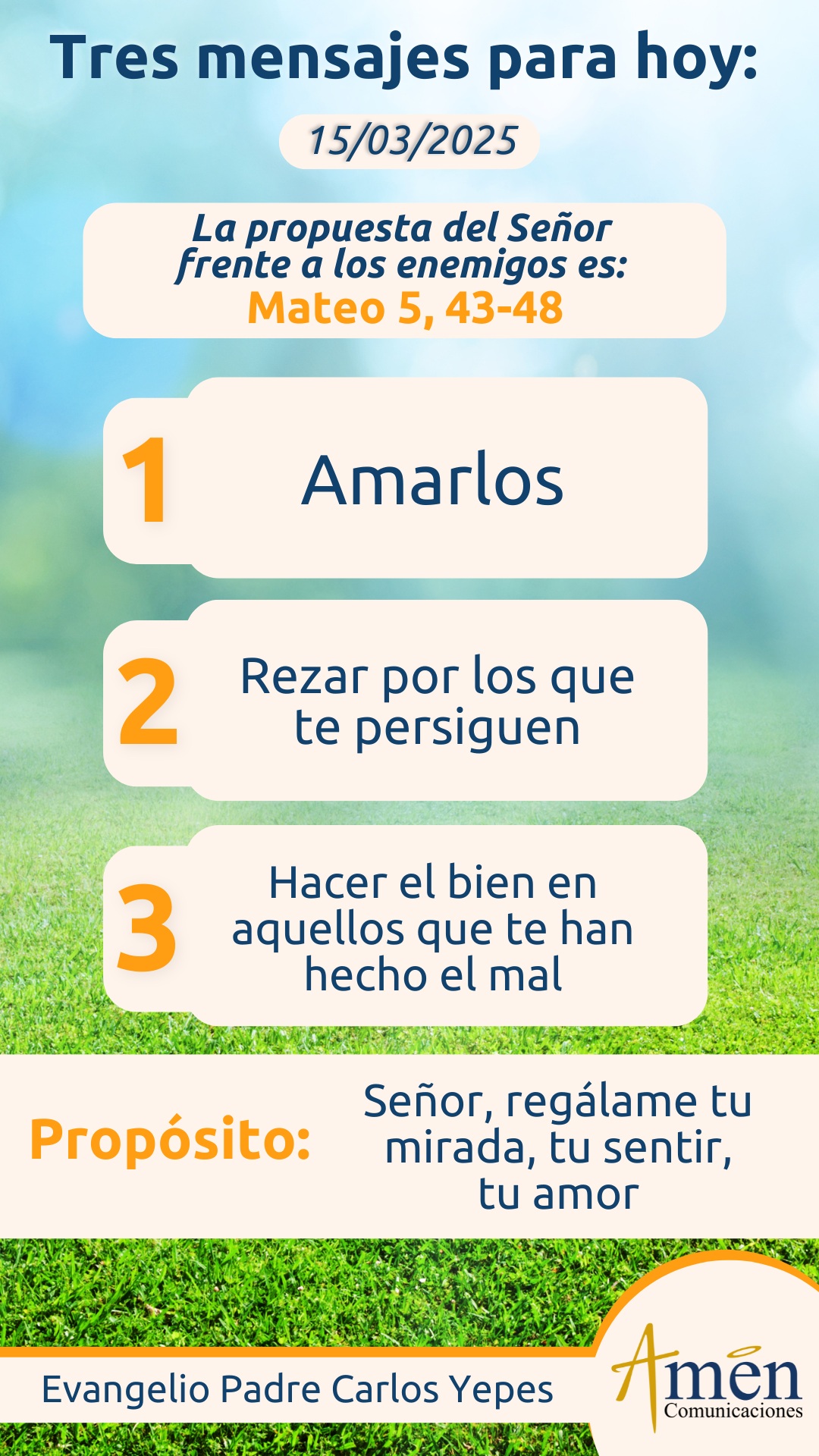 Al final, el evangelio concluirá: “Por tanto, sean perfectos como su Padre del cielo es perfecto”. En el fondo está indicando Jesús que la expresión más alta de madurez humana, de madurez evangélica y cristiana, es el amor a los enemigos y que si en algo hay perfección divina en nosotros es cuando somos capaces de hacer el bien a aquellos que nos han hecho el mal, si somos capaces de bendecir a aquellos que nos han maldecido. ¡Qué paradoja!, pero aquí está la belleza del evangelio, la sabiduría de Cristo que marcó la historia humana y la partió en dos, aquí está un desafío para vivir y no solamente para escuchar, aunque nos parezca exigente y difícil Dios no pide nada que no seamos capaces de hacer.