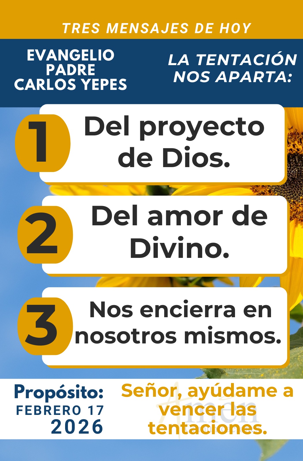 Qué distinta es una prueba que Dios tal vez ni quiere, pero permite para nuestro crecimiento espiritual y humano. Y distinta es la tentación, que es apartarnos de Dios, alejarnos de su proyecto, hacernos caer en la esclavitud del pecado y una vez allí, llevarnos a la muerte espiritual que se experimenta como soledad, tristeza, vacío, sin sentido de la vida, ruptura con la familia y ruptura con nosotros mismos.