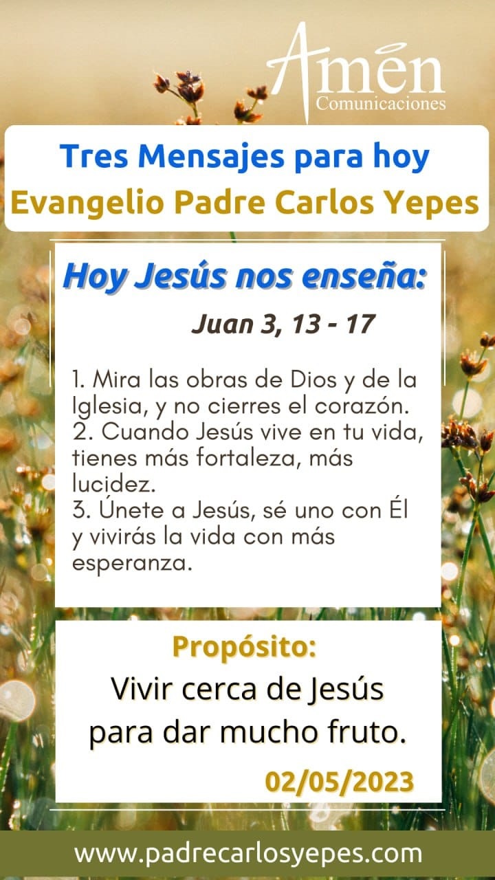 Pero también hay un segundo aspecto que nos señala Jesús en el evangelio de este día, muestra la profunda unidad que hay entre Él y el Padre Dios, y de alguna manera con esto, manifiesta el gran secreto de su vida, y si se quiere de sus frutos evangelizadores, su profunda comunión, su profunda unidad con el Padre Dios. Hoy, cuando a veces te desanimas, te desesperanzas, te invito simplemente a que digas como Jesús: “Soy uno con Él”, como Jesús decía, “Soy uno con El Padre Dios”. Cuando Jesús mora en tu espíritu, cuando Jesús vive en tu vida, créeme, tendrás más fortaleza, tendrás más lucidez, tendrás más esperanza para manejar los problemas de la cotidianidad; la clave es sencilla, únete a Jesús, sé uno con Él y vivirás la vida con más esperanza.