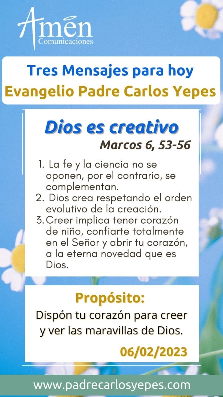 Hemos dejado como primera lectura la carta a los hebreos, y nos adentramos en el precioso, precioso libro de la creación, del Génesis. Hablaremos durante estos días de este hermoso libro que construye los relatos fundantes de la historia del mundo, de la historia de los hombres. Algunos han ponderado que el relato del Génesis es una sencilla fantasía, y que se opone a toda la teoría evolucionista de la ciencia. Esta contradicción es aparente, es un dilema engañoso, porque en el fondo la verdadera fe y la verdadera ciencia, no se oponen, sino que por el contrario se complementan. Si leemos con atención estos textos del libro del Génesis, entenderemos que el autor sagrado del libro, para nada habla simplemente de un acto creacionista, mágico, como apareciendo de la nada, si nos damos cuenta, esos períodos de día primero, día segundo, son manera simbólica en que el hombre de la Biblia habla de grandes periodos en la historia humana, periodos que pueden ser de miles o millones de años. Y descubrimos claramente un matiz evolucionista en el acto creador de Dios.