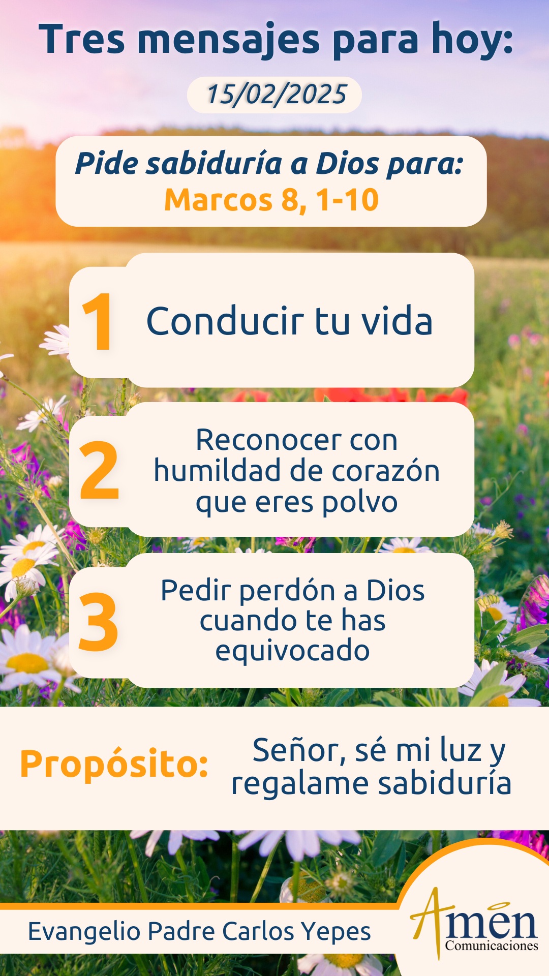 Que el Señor te bendiga en abundancia en este día y te dé luz y sabiduría para conocerte en profundidad y convertirte de lo que necesites ser convertido. En el nombre del Padre y del Hijo y del Espíritu Santo. Amén.