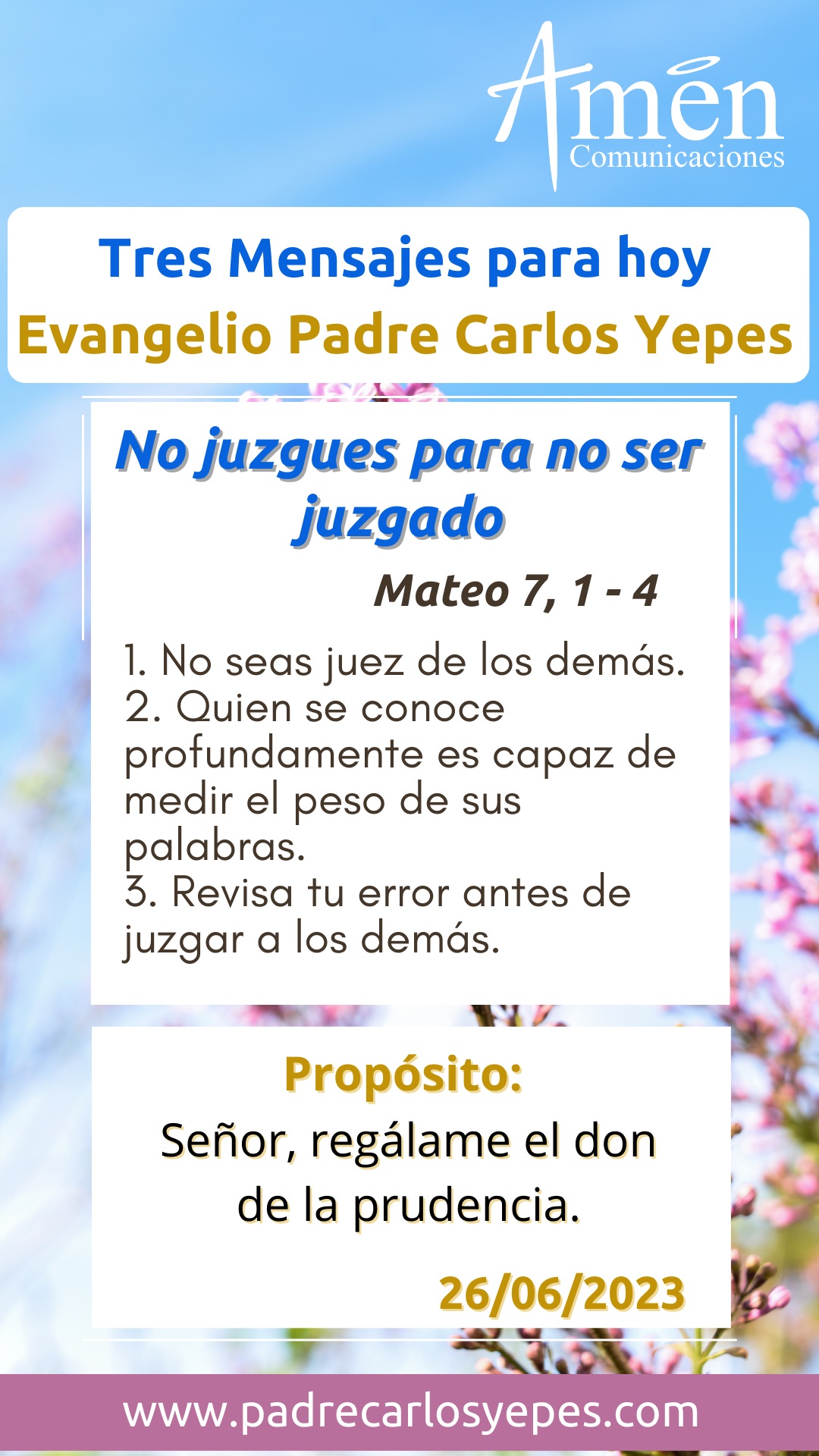En aquel tiempo, dijo Jesús a sus discípulos: -No juzguéis y no os juzgarán. Porque os van a juzgar como juzguéis vosotros, y la medida que uséis, la usarán con vosotros.