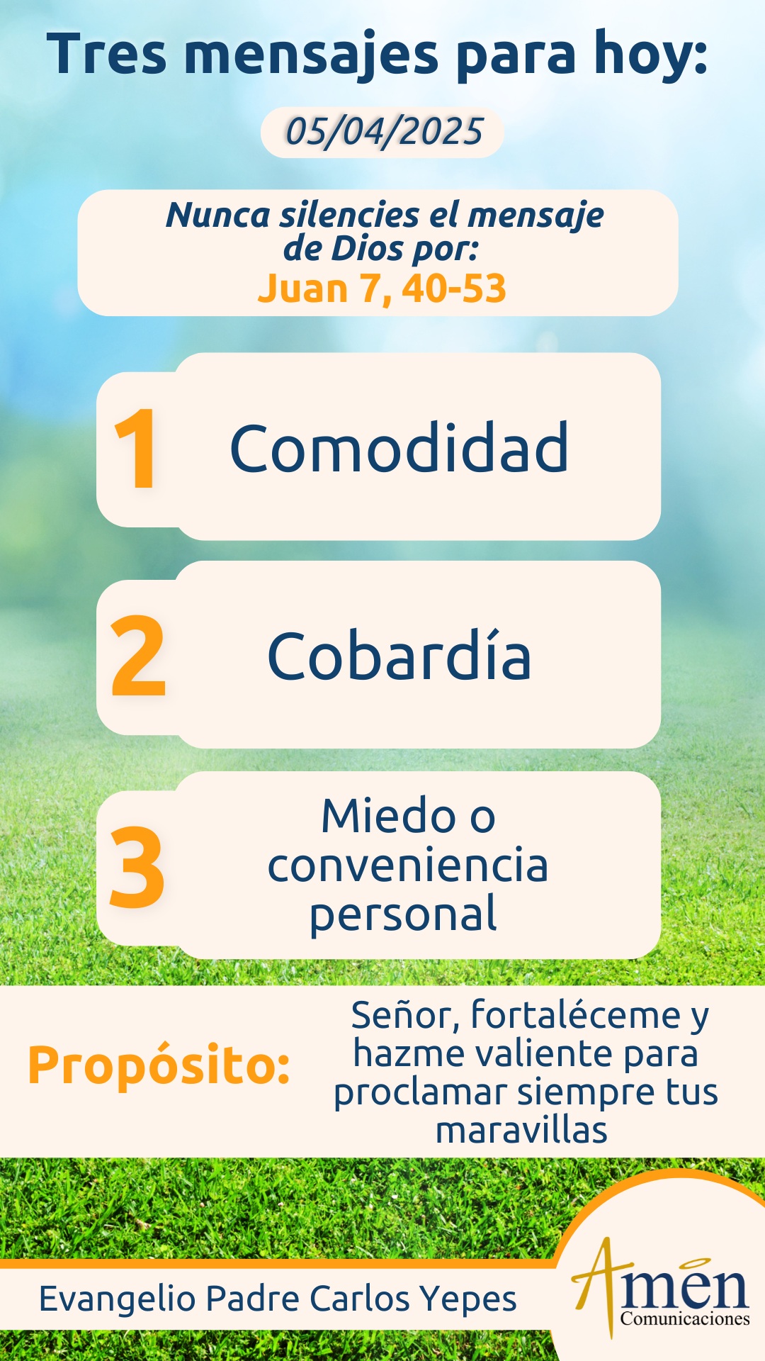 Reconozcamos cómo la vida cristiana, exige valentía de nuestra parte, en la línea de lo que habíamos presentado en evangelios precedentes, y no podemos por comodidad, por cobardía, por miedo, por conveniencia personal, callar el mensaje de Jesús, silenciarlo, porque al mundo no le resulta cómodo, porque al mundo le resulta chocante el mensaje del evangelio, mensaje de vida y de verdad, mensaje de gracia y de paz, mensaje de salvación y mensaje de sensatez y perdón.