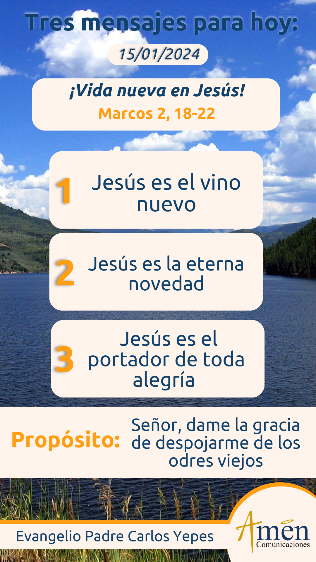 Señor, gracias por este evangelio, no permitas que sea, un viejo cristiano como los fariseos y escribas de hace 2000 años, sino ayúdame a entender la dinámica siempre fresca, siempre nueva del evangelio, el vino nuevo, el vino mejor, que nos permite una vida con mayor plenitud.