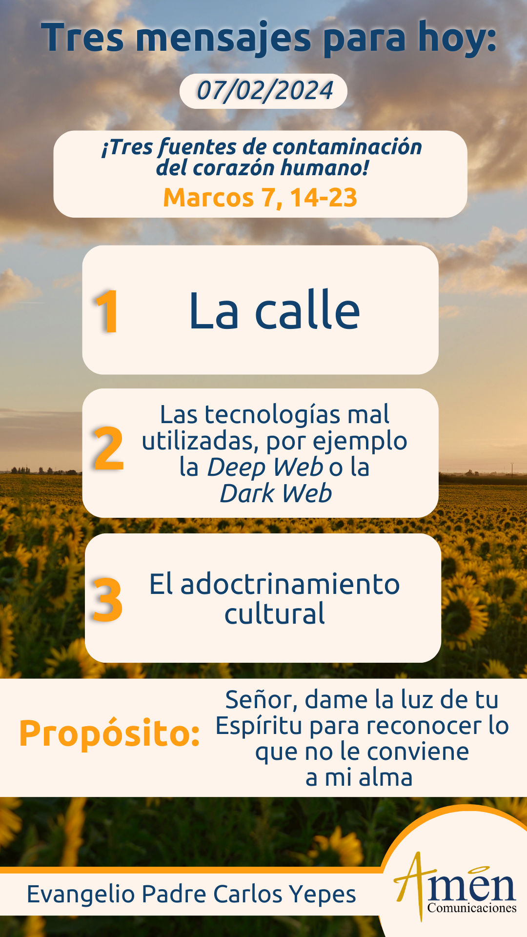 Sin lugar a dudas, una de las grandes iluminaciones del evangelio que Jesús trae para el mundo entero, es la que nos presenta hoy Marcos en el capítulo 7, cuando por encima del formalismo y la exterioridad que practicaba el judaísmo en el siglo primero, declara Jesús: “Que nada que entre de afuera hace al hombre impuro”, esto es, los alimentos, frente a los cuales el judaísmo del siglo primero, era supremamente escrupuloso. Por el contrario, declarará Jesús: “Que sólo lo que sale de dentro, del corazón humano, es lo que hace impuro al hombre”, y lo repite nuevamente: “Lo que viene de afuera no entra al corazón a lo más profundo del ser humano, sino al estómago, a su vientre, y luego sale por la letrina, el sanitario”. Pero agregará Jesús: “Que lo que sale de lo profundo del hombre es lo que lo contamina y lo hace impuro”, y enuncia un elenco de actividades, que no parece propio de la vida pueblerina y sencilla de los pueblos orientales hace dos mil años, sino que parece que estuviera describiendo, la vida del hombre del siglo 21. Esto nos muestra que la condición humana, ha sido siempre igual, y Jesús enunciará: “Que, en el corazón humano, de lo profundo de su ser, salen pensamientos y deseos perversos: la fornicación y toda acción contra la pureza interior, el deseo de robos por la codicia del alma, que busca acumular y atesorar. Nace también el homicidio, no solamente por la acción de matar, sino por el deseo de suprimir la vida de una persona. El adulterio configurado hoy como una verdadera lacra en la vida matrimonial; nace del corazón humano la malicia, la incapacidad de pensar bien y por el contrario los pensamientos retorcidos”. Y también del corazón humano dirá Jesús: “Nacen los fraudes, esto es, los engaños, el desenfreno, la envidia de unos por otros, la difamación o la calumnia por odio a otra persona, odio a una institución como la Iglesia o afán de dinero; y del corazón humano nace el orgullo que nos ha acompañado toda la vida, y la frivolidad, la superficialidad en la manera de pensar”.
