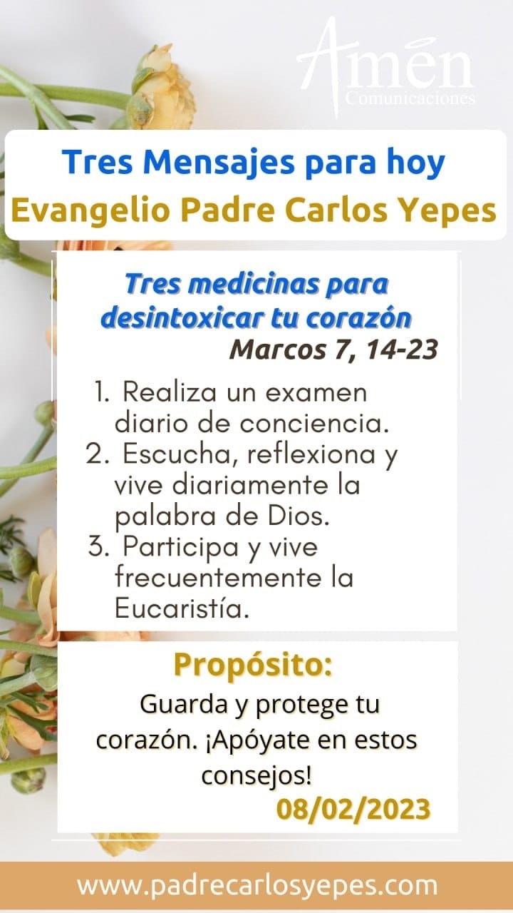 En una tercera y última medicina para sanar el corazón, para desintoxicarlo, está la Eucaristía frecuente. Más allá de la sola misa dominical, busca en semana, donde es menos el flujo de público o de audiencia, estar con cierta intimidad en la Eucaristía, sobre todo en el momento de la consagración o elevación del el pan y el vino eucarísticos, entregarle al Señor tu vida, y pídele el don de ser sanado de esos robos, adulterios, codicias, injusticias, malos propósitos, fornicaciones, desenfreno, difamaciones, que puede haber en nuestro corazón.