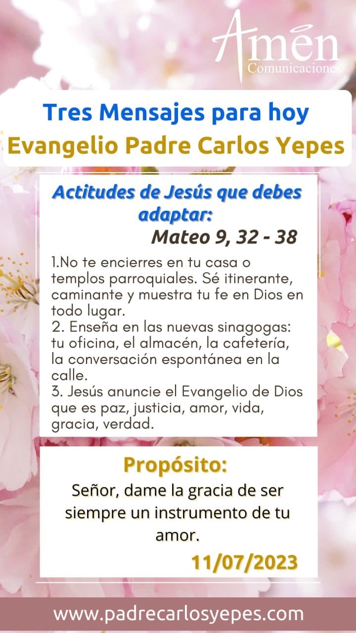 Hoy te invito en un cambio de época, donde hemos pasado de una cultura cristiana a una cultura que llamamos secular, donde importa la materia, el placer y el bienestar humano, pero hemos sacado a Dios de nuestra vida, te invito para que no te canses de evangelizar y, por el contrario, siguiendo el ejemplo del evangelio de hoy, descubramos actitudes fundamentales de Jesús hace 2000 años y de todo evangelizador en los tiempos de hoy.