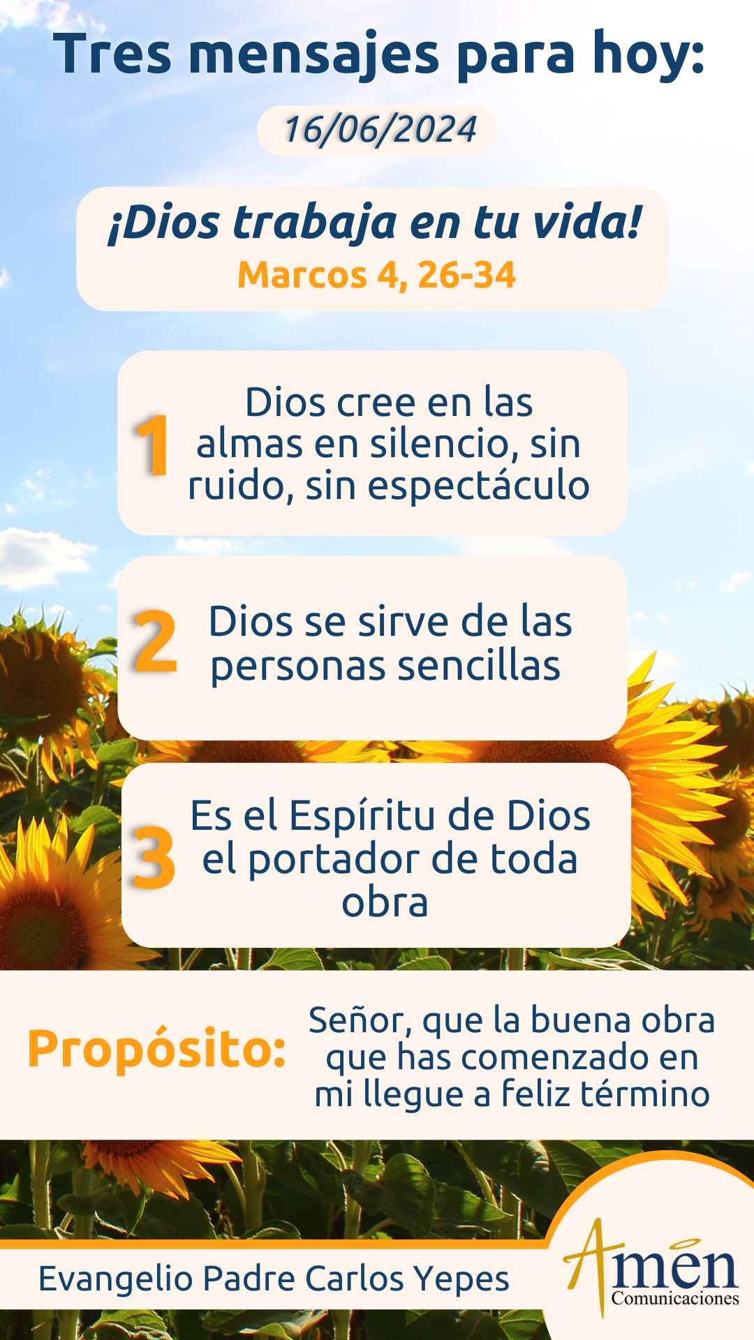 Esta primera lectura de la profecía de Ezequiel en el capítulo 17, nos prepara para comprender mejor el evangelio de hoy, donde Jesús, el Maestro de las parábolas, quiere explicarnos el misterio del reinar de Dios, del actuar de Dios, de la lógica de Dios, del acontecer de Dios en nuestra vida, y se sirve de dos sencillas y simples parábolas y afirmará: “Que el Reino de Dios se parece a un hombre que echa semilla en la tierra; el hombre en la noche duerme, en el día trabaja y la semilla germina y crece, sin que el hombre sepa cómo, porque la tierra va produciendo fruto por sí misma. Primero los tallos, luego la espiga, luego el fruto”.