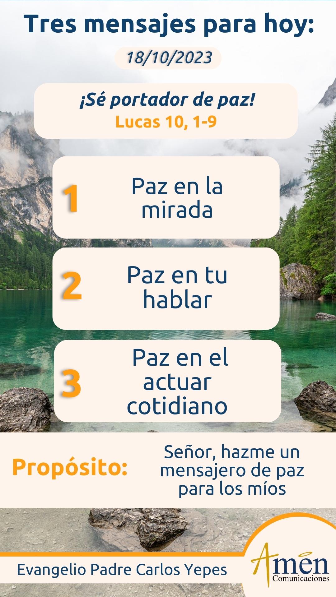 Señor, como en el evangelio de hoy, hazme un mensajero de paz para los míos.