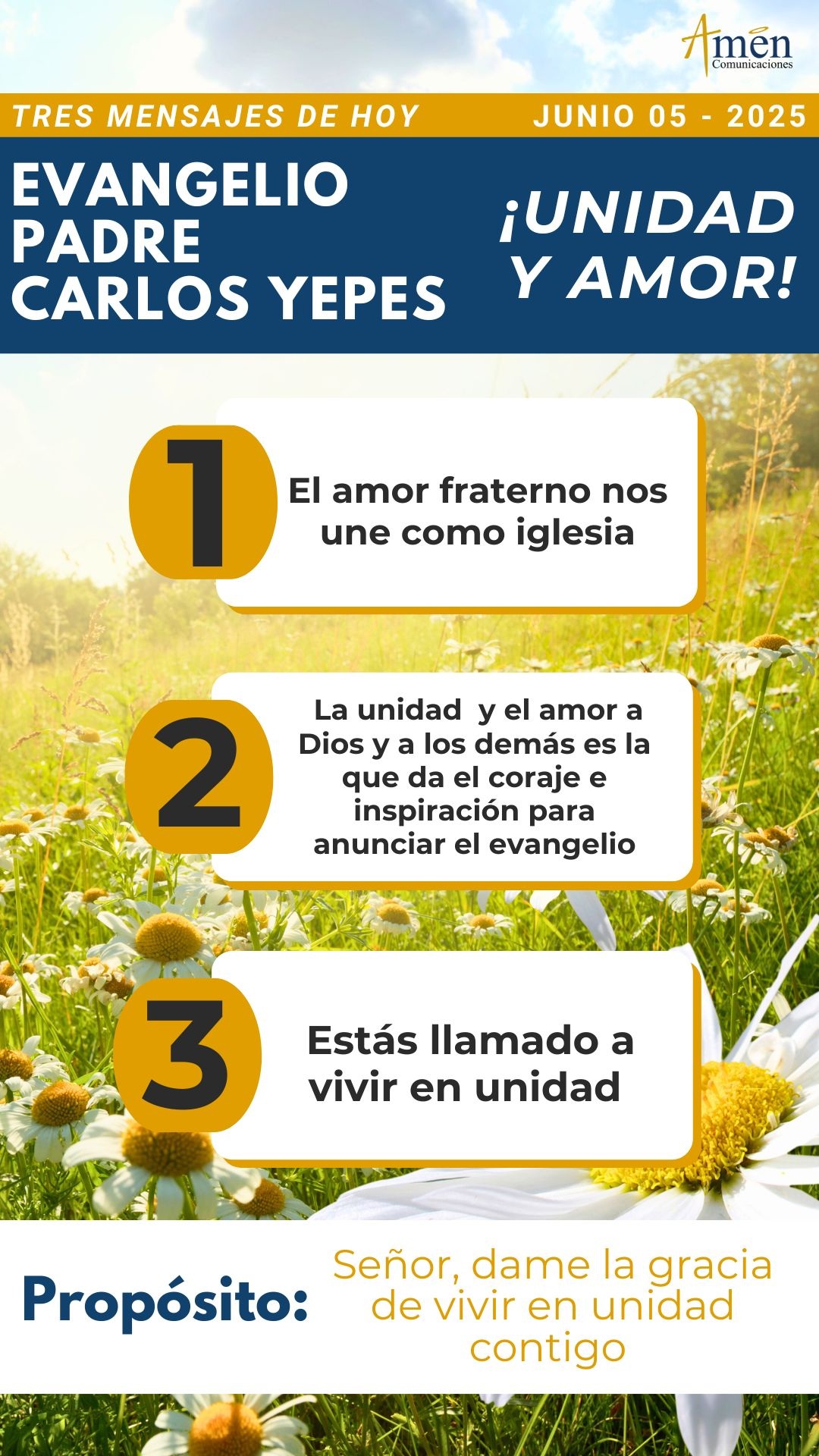 Hay unidad aparente alrededor de una camiseta de un equipo de fútbol, hay unidad aparente en un concierto de un cantante de reguetón; pero la unidad profunda de la que nos habla Jesús es la unidad alrededor del amor, del amor de Dios, que tiene unidad profunda con el Padre, con el Hijo, con el Espíritu Santo.