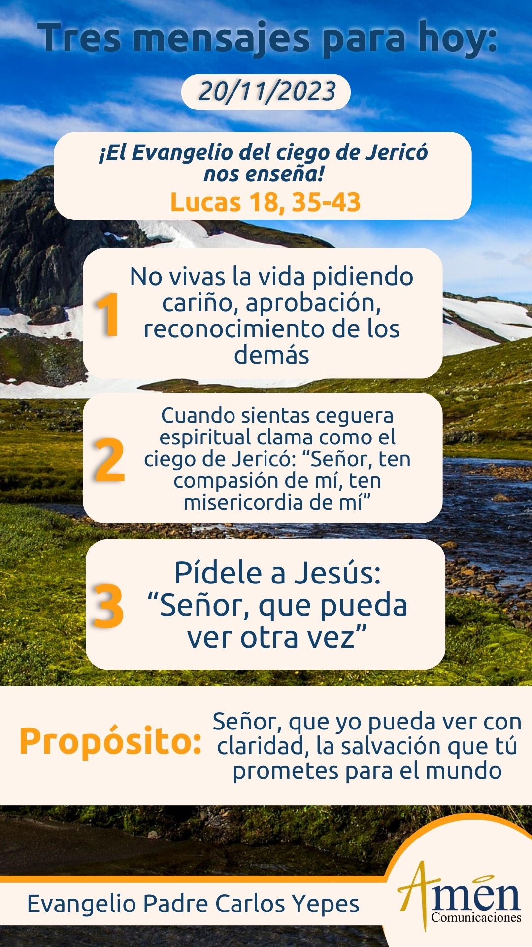 En uno de los más hermosos pasajes evangélicos, por lo menos de manera personal así lo percibo, encontramos la sanación que Jesús hace del ciego de Jericó. Pero descubramos unas etapas especialícimas, y reconozcamos que muchas veces en la vida nosotros también estamos ciegos, por lo menos espiritualmente, y no reconocemos el pasar de Dios por nuestra vida.