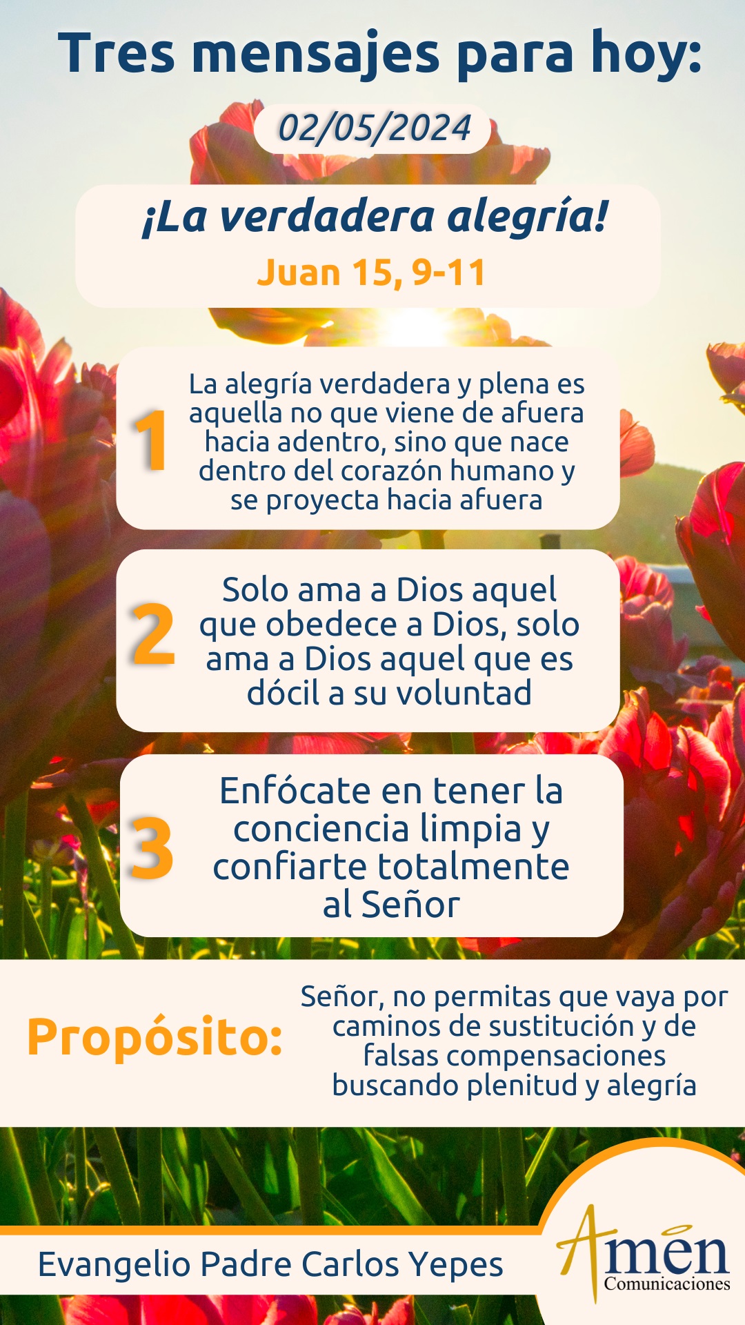 Hoy descubre, a partir de permanecer en el amor de Dios uno, obedecer sus mandatos, dos, cumplir el deber, tener la conciencia limpia y confiarnos totalmente al Señor, tres, descubre vías concretas para una alegría que a veces se nos hace difícil de alcanzar, es esquiva para muchos hombres y buscamos por caminos de sustitución, de falsas compensaciones, llenar este corazón humano, generando todo lo contrario, no llenura sino vacío, porque a veces, mientras más llenos del mundo estamos, más vacíos en nuestro corazón nos encontramos.