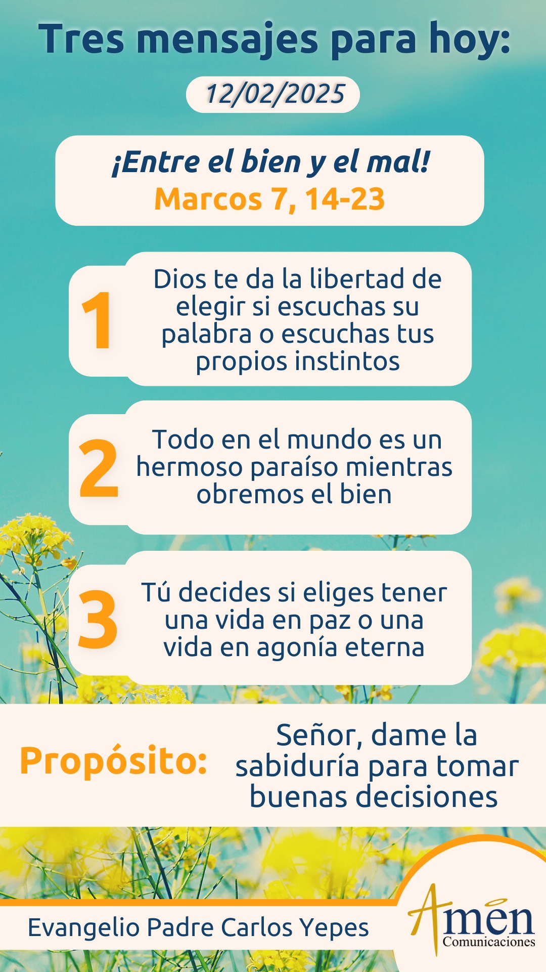 Hoy, tú y yo, cuando vemos guerras, explosión social, dictaduras políticas, manipulación mediática, pobreza, inequidad, desigualdad, violencia intrafamiliar y extrafamiliar. Cuando vemos agresividad en las redes sociales de unos contra otros, polarizaciones ideológicas y políticas, discursos de algunos explotadores de la buena fe de la gente, preguntamos ¿en qué momento equivocamos el camino?, ¿a qué hora nos olvidamos de Dios?, ¿qué nos ha pasado como hombres?, ¿qué nos ha pasado como civilización?, por qué dejamos a un lado el mandato de Dios si todo en el mundo es un hermoso paraíso y mientras obremos el bien, esto es con solidaridad, sin ambición, sin egoísmo, compartiendo en comunión y amor, el mundo es un paraíso y por el contrario, cuando probando el fruto apetitoso de entrada pero amargo en el vientre del árbol del bien y del mal, y comamos de ese fruto siguiendo nuestro propio criterio, entramos en la dinámica del egoísmo, de la imposición, de la violencia, del desamor, de la injusticia, del pensar sólo en nosotros, y entonces el mundo que podría ser un edén, un paraíso, desaparece ante nuestros ojos. Esto nos plantea un desafío superior, ¿cómo utilizamos nuestra libertad? No te quejes del destino que hoy cargas en tu vida, tal vez tú mismo te lo has labrado, quizás el sufrimiento de hoy es la sumatoria de decisiones equivocadas en el pasado, o quizás la alegría y la paz que hoy disfrutas es la síntesis, la sumatoria de buenas decisiones tomadas en libertad en años anteriores. “Ante nosotros se presenta bien y mal, vida y muerte” como nos dirá el salmo primero, nosotros decidimos entre la verdad y la mentira, entre la luz y la oscuridad, entre creerle a Dios o creer las baratas ideologías que nos venden algunos muy bien empaquetadas en papel de regalo y de muchos colores, tú decides si hay sabiduría en tu vida y eliges la verdad. Que hermoso texto que hoy nos pone a pensar.