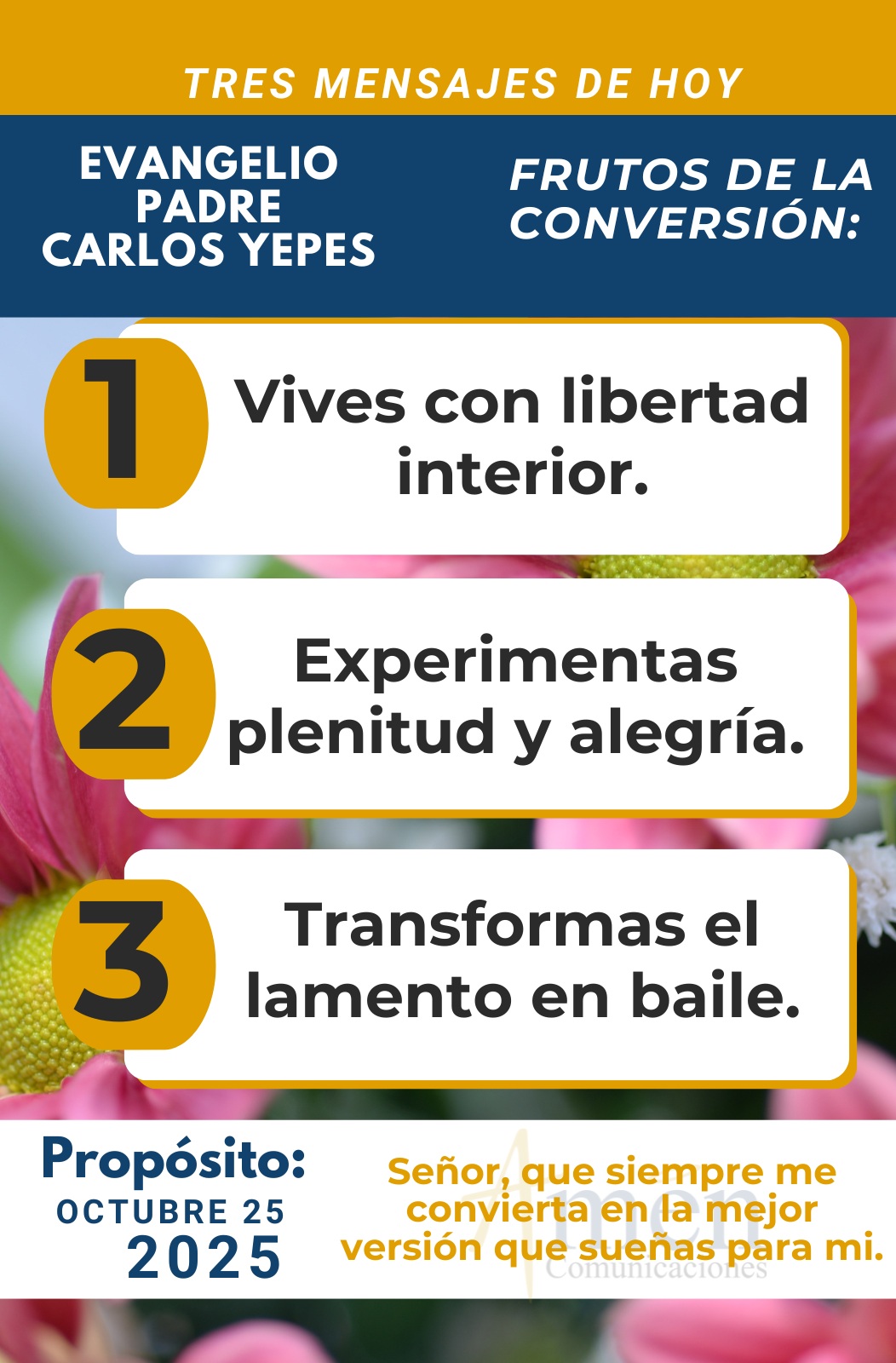 TRANSLITERACIÓN REFLEXIÓN PADRE CARLOS YEPES ¡Cambio de vida! Seguimos con esta lectura más o menos continuada de la Carta de Pablo a los Romanos, que, por su agudeza antropológica, sicológica y teológica, es un verdadero tesoro para la vida de todo creyente. Afirmará en efecto, el apóstol san Pablo: “Los que viven según la carne desean las cosas de la carne. En cambio, los que viven según el Espíritu desean las cosas del Espíritu”. Y con su gran agudeza afirmará: “El deseo de la carne siempre nos lleva a la muerte, y por el contrario, el deseo del hombre de vivir según el Espíritu de Cristo siempre nos lleva a la paz, a la alegría interior que se llama gozo y a la vida en plenitud”. Y precisará el apóstol: “Los que viven según la carne, los impulsos de su naturaleza, celos, envidias, lujuria, gula, avaricia, codicia de los bienes, murmuración, peleas, rivalidades. Los que viven según su condición meramente humana, no redimida o no abierta a la redención de Cristo, no pueden agradar a Dios”. Pero concluirá este texto de Romanos capítulo 8: “Si Cristo está en nosotros, aunque el cuerpo esté muerto por el pecado, el espíritu interior que habita dentro del cuerpo de cada uno de nosotros vive por la fe en el Señor. Y si el Espíritu del que resucitó a Jesús de entre los muertos, o sea del Padre Dios, habita en nosotros. El que resucitó de la muerte a Cristo Jesús también dará vida a nuestros cuerpos mortales por ese mismo Espíritu vivificador que ha habitado en Cristo y al cual nosotros nos queremos abrir”. Detallo esta afirmación porque es central, no solamente en toda la teología de san Pablo, sino en la vida cristiana. He vivido ya años de sacerdocio y he descubierto que muchas personas que, aunque tuvieron prácticas rituales y litúrgicas, aunque se dicen bautizados, no tienen conciencia. Esa es la palabra, no tienen conciencia clara de la realidad de la vida divina que los habita con ocasión del bautismo. Y mientras nosotros, como creyentes en Jesús, nuestra fe sea solamente teórica o conceptual, y no abramos el corazón lo más profundo del ser a la vida divina que recibimos en el bautismo, no seremos verdaderamente redimidos de las tendencias desordenadas de la concupiscencia, de los deseos desbordados que nos llevan a pelear, angustiarnos, a mirar enemigos en los demás, a dejarnos esclavizar a veces por situaciones que simplemente nos llevan al fracaso de la vida personal. Hoy reconozcamos que como bautizados, como transformados por la vida de Jesús en nosotros, ya no podemos vivir en esclavitud, sino que tenemos el poder para vivir en libertad, la libertad gloriosa de los hijos de Dios, de la que con alguna frecuencia habla el apóstol Pablo, y que podemos evidenciar cuando sentimos que el pecado de la rabia, que el pecado del rencor, que el pecado del orgullo, que el pecado de la lujuria, que el pecado de la adicción a las drogas, que el pecado de la pereza, que el miedo, que la desesperanza ya no determinan mi vida, ya no influyen en mis decisiones, ya no entristecen mi corazón, porque somos libres, libres. Vivimos plenitud de vida por la nueva gracia, la nueva vida que Cristo nos da a cada uno de nosotros. Pero pasemos al evangelio, y cuando dos situaciones que impactaron profundamente en la sociedad y en tiempos de Jesús, algunos lo leen en clave del castigo de Dios, Jesús no lo hace así y corrige a los suyos. Las dos situaciones puntuales son la de la muerte de algunos habitantes de Galilea, cuya sangre había mezclado Pilato con la de los sacrificios rituales de animales que se ofrecían. Jesús les dirá: “Esos galileos, aunque ustedes crean que eran grandes pecadores, por la manera como se mezcló su sangre con la de los animales rituales, no eran más pecadores que nosotros”. Y afirmará Jesús de manera tajante: “Les digo que, si no se convierten de corazón, todos perecerán, lo mismo que esos galileos”. Y luego enuncia una segunda situación a propósito de 18 personas, probablemente trabajadores, que construían una torre en el pequeño poblado de Siloé, y ella se derrumbó y los mató. Un hecho que conmocionó a la sociedad de su tiempo y que ellos entendían que era castigo de Dios, como lo de los galileos, y que eran más pecadores que los demás habitantes de Jerusalén. Y Jesús les dirá: “Lo que aconteció con esos 18 hombres trabajadores construyendo la torre de Siloé, no los hace más pecadores que ustedes”. Y vuelve a repetirles la expresión: “Si no cambian de vida, si no se convierten, todos morirán, todos perecerán de la misma manera”. Hoy cambia esa idea de que si a alguien le va mal en la vida es porque Dios le está castigando. Esa idea de la justicia retributiva era del judaísmo más primitivo. Pero en Jesús miramos que, si bien el Padre de los cielos es justicia en algunos momentos, es ante todo misericordia. Pero será sólo misericordia con nosotros si aprendemos a dar frutos de vida eterna, frutos de santidad, frutos de justicia frente a los demás. De hecho, en la segunda parte del evangelio plantea la parábola de la higuera plantada en el viñedo y cuando el dueño del viñedo va a buscar fruto y no lo encuentra, pide a uno de los trabajadores que la corte. Pero luego responde el viñador: “No lo hagas, dejémosla todavía un año más, abonémosla con estiércol (el abono natural de la época), a ver si todavía puede dar fruto, démosle una nueva oportunidad”. Esta parábola de la higuera estéril es aplicada a cada uno de nosotros. Tu vida y la mía no pueden ser árboles estériles, estamos llamados a dar frutos en la vida de los demás, frutos en nuestra vida. ¿Quieres conocer a alguien de verdad? Mira su historia y descubre en ella si ha habido justicia, amor, servicio, entrega, donación por los demás. Y entonces dirás que su vida es como un árbol frondoso, fecundo, que ha dado frutos abundantes. Por el contrario, y lo encuentras con alguna fre