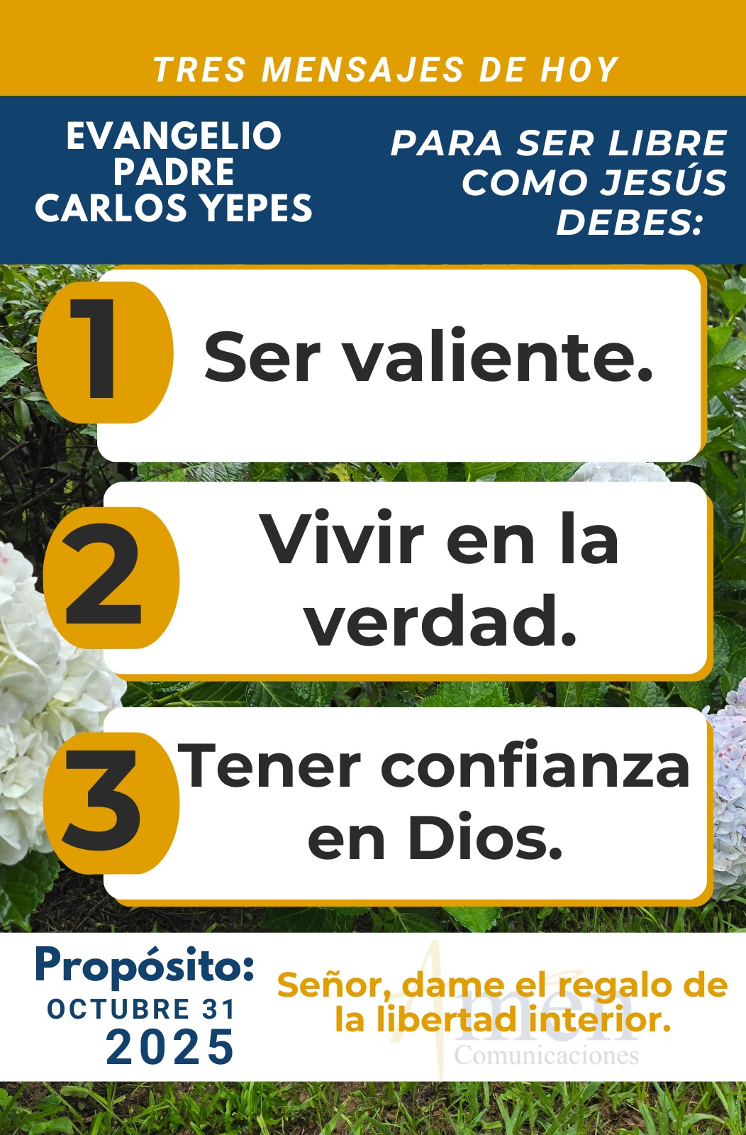 Finalmente, cuando hoy encontramos casos de personas que han sido encarceladas o enjuiciadas judicialmente por defender una convicción religiosa, ética, filosófica o moral, hoy tenemos que crecer como tercera actitud en la confianza en Dios. No dejes que el miedo te pueda, confía en Dios; ya Jesús lo había anunciado: “Me persiguieron a Mí, a ustedes también los perseguirán”.