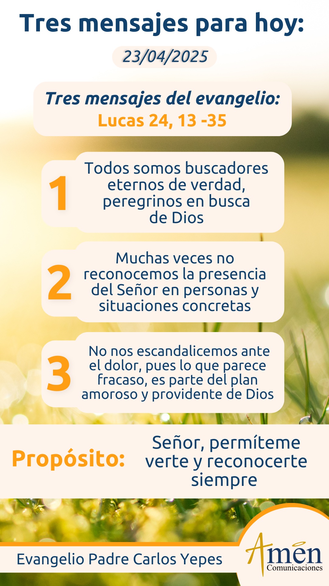 Que el Señor te permita tener el corazón de los peregrinos de Emaús y te bendigo en este día. En el nombre del Padre y del Hijo y del Espíritu Santo. Amén.