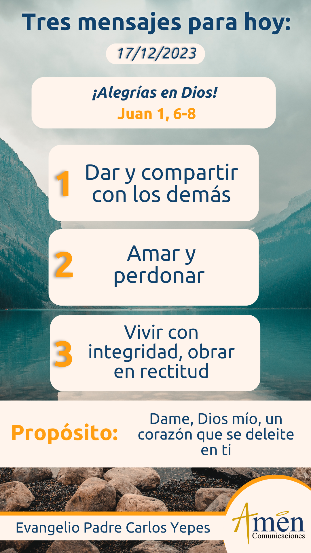 Hoy, no pierdas la oportunidad de experimentar ese gozo en Dios, que solo nace de un corazón libre y en paz consigo mismo, con los otros, con la creación y con Dios.