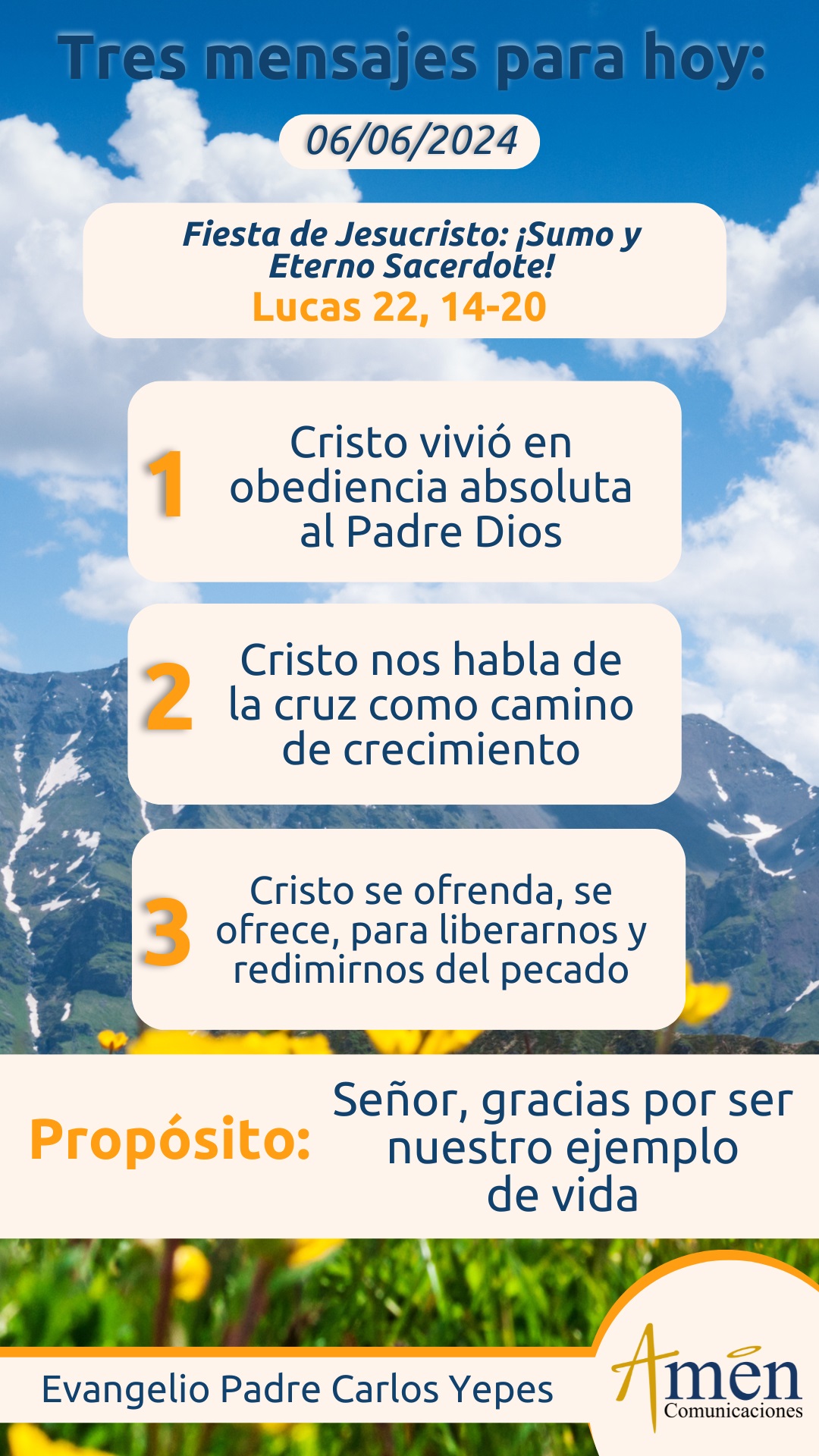 Por eso también encontramos la primera lectura del profeta Isaías, el precioso y diciente himno del “Siervo doliente de Dios, Siervo doliente de Yahvé”, que anticipa con lujo de detalles la Pasión de Cristo y que muestra precisamente desde esa primera lectura, el carácter sacrificial de la vida de Jesús que se entrega por todos, para el perdón de los pecados y para darnos la vida nueva. Pero ¿qué significa esta fiesta de Jesucristo, Sumo y eterno Sacerdote para nosotros hoy?, digamos tres enseñanzas centrales.