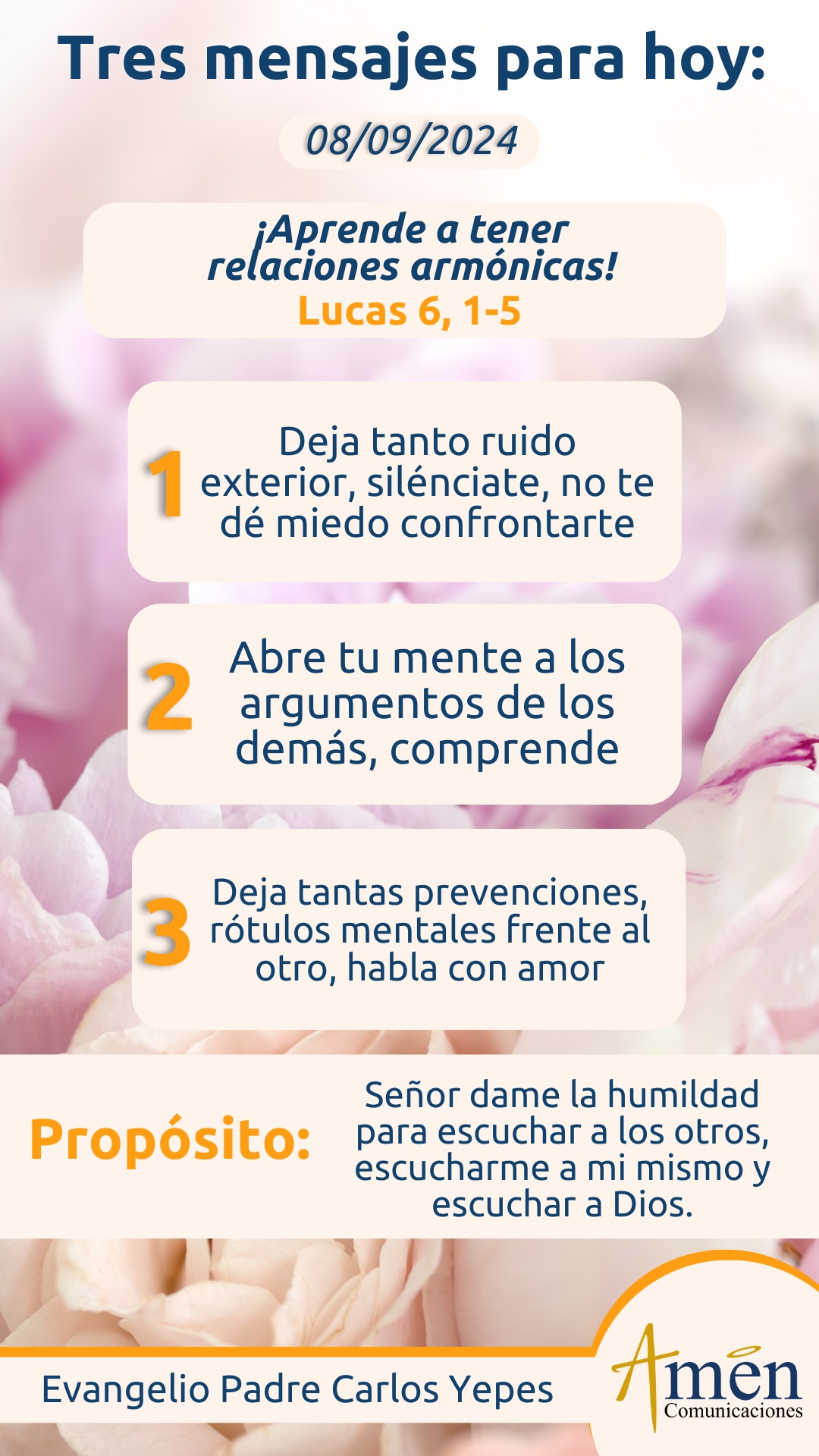 Que el Señor nos bendiga a todos en abundancia en este día y nos dé la capacidad de sabernos escuchar no sólo con el oído, sino con el corazón, y te bendigo en el nombre del Padre, y del Hijo y del Espíritu Santo. Amén.