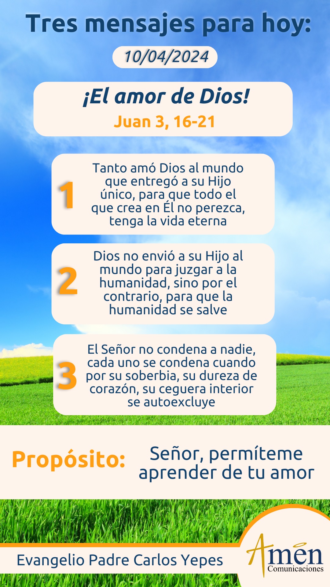 Señor, gracias por esta palabra llena de vida y de sabiduría, que entendamos que sólo somos cristianos más allá de una ritualidad, de un cumplimiento moral, del aprendizaje de unas doctrinas y dogmas, más allá del conocimiento de una normativa y leyes canónicas, sólo somos creyentes y cristianos de verdad, cuando profunda, personal y transformantemente, hemos experimentado el amor de Dios, sólo así podremos decir, sé lo que es ser cristiano, porque he vivido el amor de Cristo en mi vida, en mi comunidad, en la vida de la humanidad.