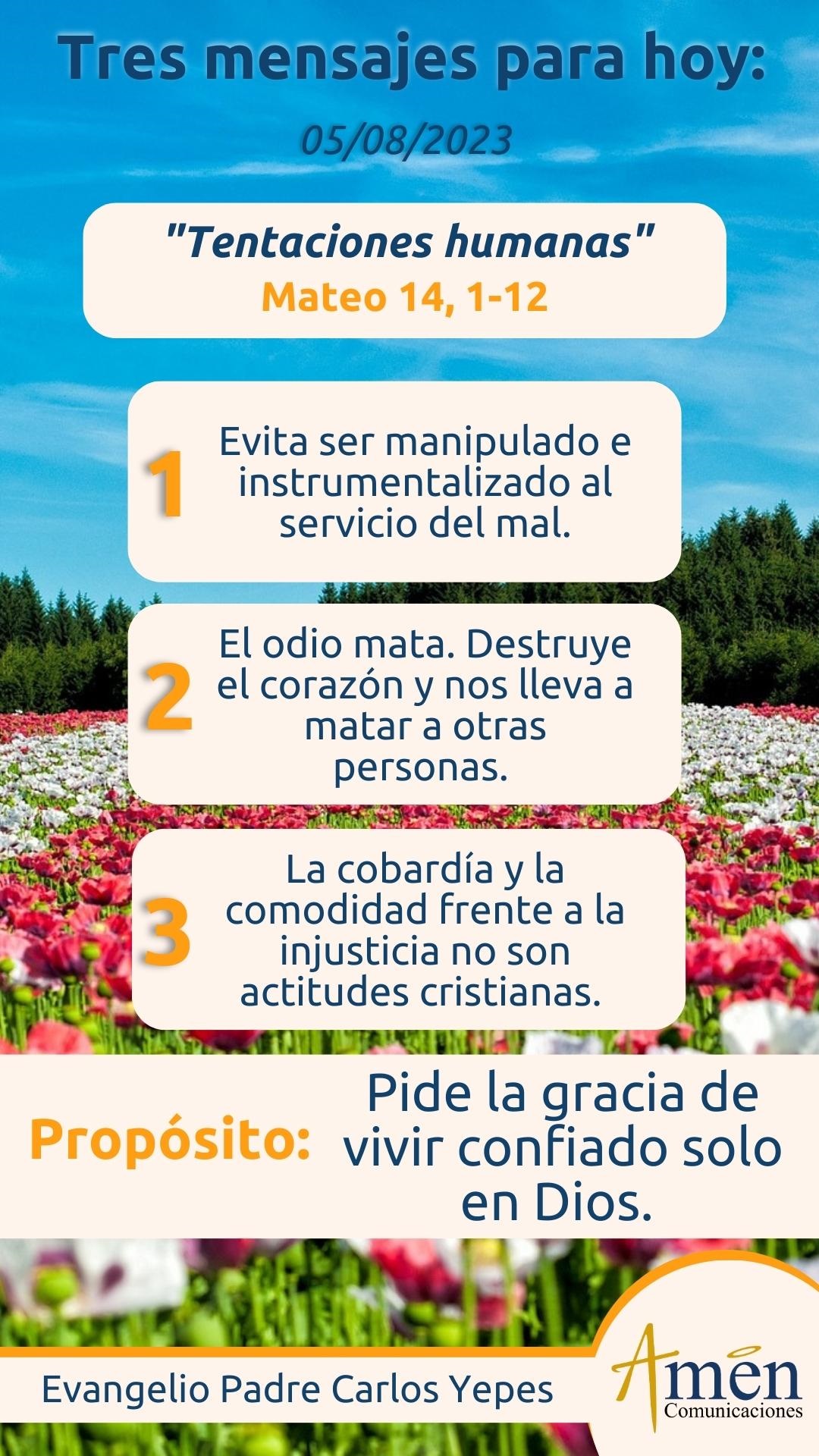 Hoy pidámosle al Señor, que vivamos como Juan el Bautista, confiados, más allá de todo peligro, de todo mal, aparentemente perdió su vida, pero pensamos que en fe la ganó, porque el martirio le alcanzó la vida eterna con Dios.