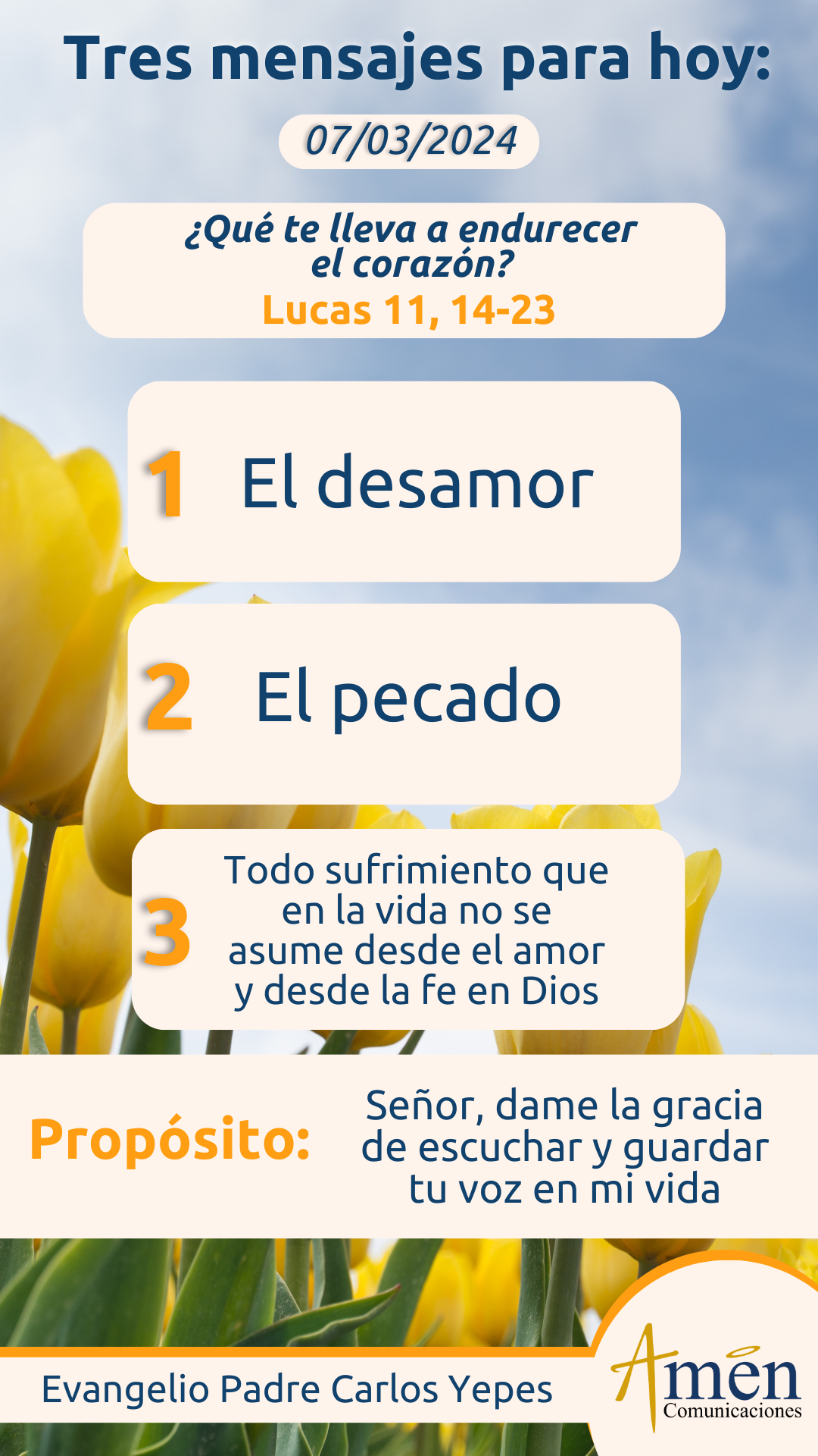 Hoy, que nuestro corazón no se endurezca, que no pequemos por ignorancia frente a Dios, que no lleguemos al final de la vida rebeldes, desobedientes, rechazando a Dios, que no lo pongamos a prueba como nos dice el salmo responsorial de hoy, que escuchemos y guardemos la voz y el mensaje que Dios hoy tiene para nuestra vida.