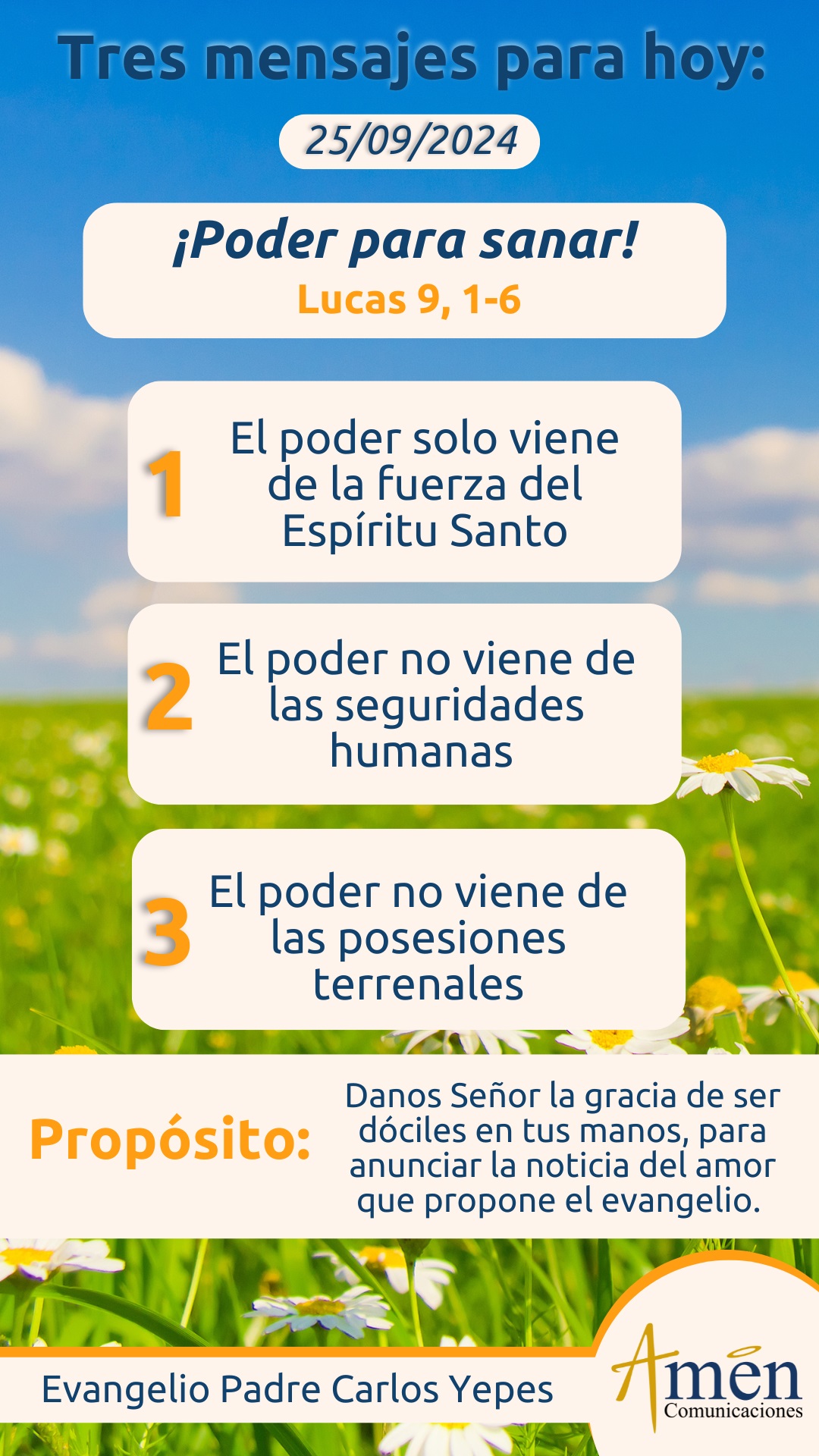 Pero ahora, hablemos del evangelio que nos propone san Lucas en el capítulo 9. Jesús, reunido con el grupo de los 12, los más cercanos discípulos y luego apóstoles, les confiere poder y autoridad sobre el mal y sobre la enfermedad. Es hermoso y es poderoso escuchar estas palabras de Jesús, les da exousia, autoridad, les da poder a sus discípulos para liberar del mal del mundo en los corazones y para curar de las enfermedades que tanto sufrimiento causan a nuestras vidas. Luego Jesús los envía a todos ellos a proclamar el Reino de Dios y a curar los enfermos, y los invita a tener dos actitudes fundamentales: “Ir por el mundo ligeros de equipaje”. En efecto les dirá: “No lleven nada para el camino, ni bastón, ni bolsa, ni pan, ni dinero, tampoco tengan dos túnicas de repuesto”, porque Jesús entiende que la exousia, la autoridad y el poder para liberar del mal y para sanar de enfermedades, no viene de las seguridades y de las posesiones terrenales, nos viene sólo de la fuerza del Espíritu Santo que Dios entrega a un corazón libre, a un corazón dócil, a un corazón obediente.