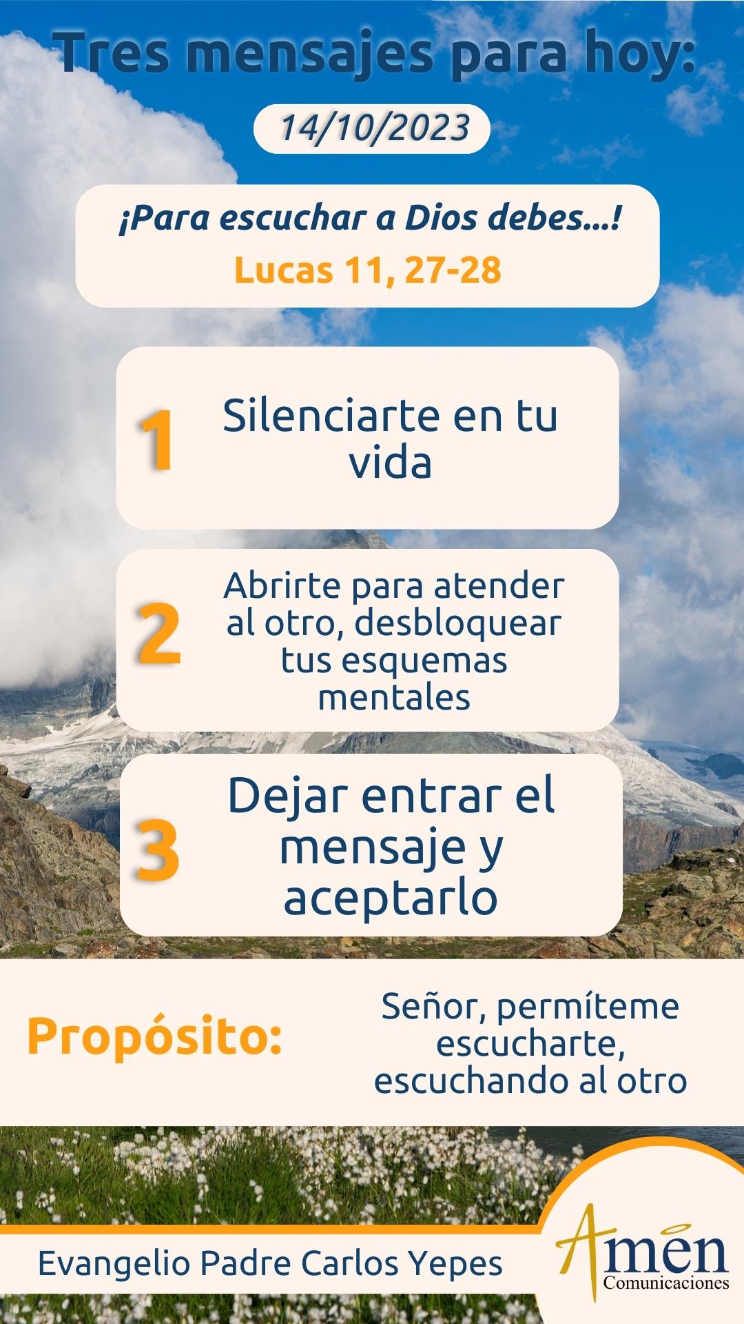 El evangelio de hoy nos presenta una frase lapidaria de Jesús: “Dichosos los que escuchan la palabra de Dios y la cumplen”. Hoy detengámonos en esa primera expresión de esta frase, ¡escuchar a Dios, escuchar su palabra!; ¿la escuchamos en nosotros en la oración personal?, ¿lo escuchamos en los otros, en su mensaje que nos dan cotidianamente?, ¿escuchamos a Dios en las situaciones o episodios que acontecen en nuestra existencia?, escuchamos a Dios en hombres sabios y espirituales, pero escuchamos a Dios sobre todo en su Palabra.