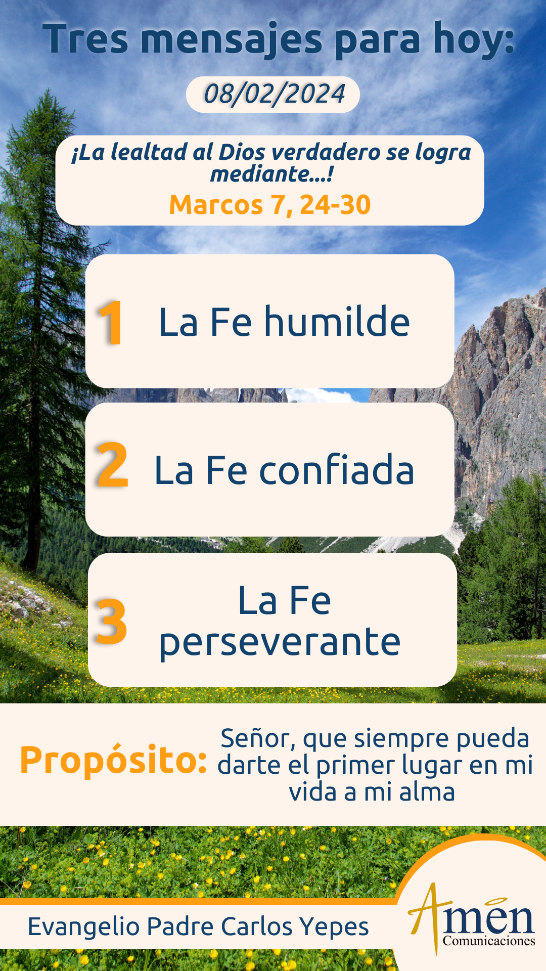 Finalmente, además de la humildad y la confianza, encontramos una tercera característica de la fe de esta mujer, que le lleva a ganar la batalla frente a Jesús y alcanzar precisamente que su hija que estaba enferma, pueda ser sanada; esta tercera característica es la perseverancia, que es virtud propia de los santos. Siempre les diré, que iniciar en la vida con Dios es de muchos, perseverar en la vida con Dios es de pocos, terminar hasta la muerte en la vida con Dios, es solo de los santos, de los hombres, de hombres y mujeres únicos. Esta mujer fue perseverante, no se dejó desanimar ante las respuestas destempladas de Jesús que querían poner a prueba su fe y por eso alcanzó la gran bendición de ver la sanación de su hija.