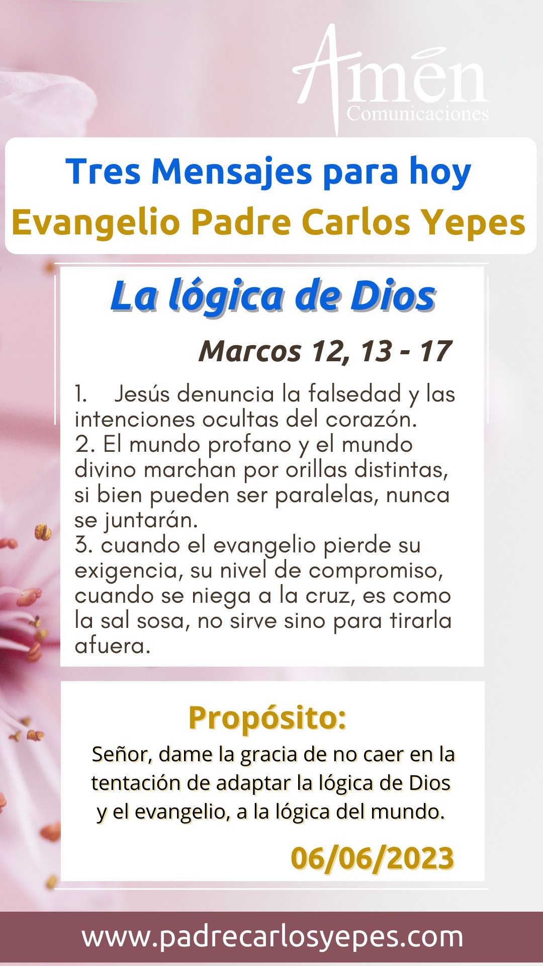 Señor, dame la gracia de no caer en la tentación de adaptar la lógica de Dios y el evangelio, a la lógica del mundo.