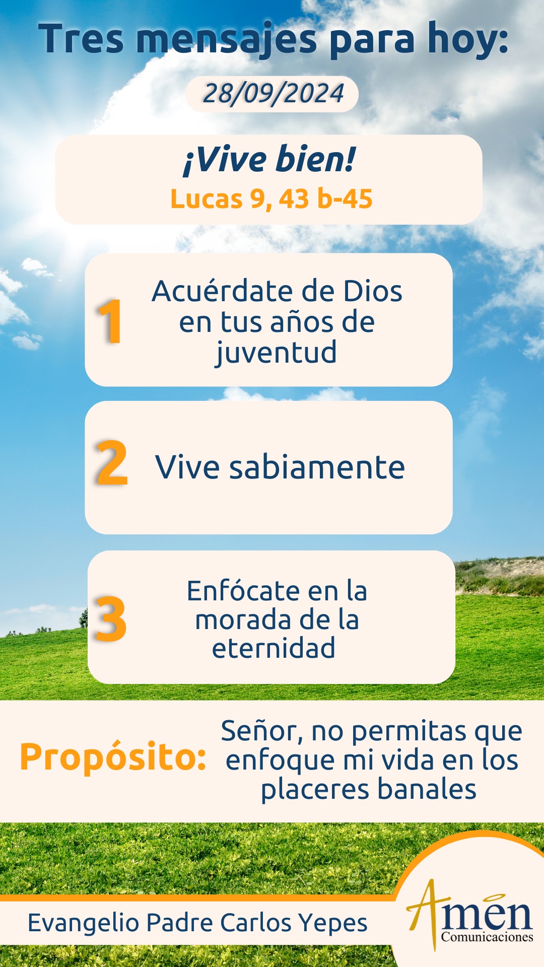 Continuamos con esta meditación de este precioso libro sapiencial del libro del Eclesiastés, cuya lectura meditada recomiendo ampliamente. Nos habla el capítulo 11 y 12 de este libro: “De cómo en la juventud a veces vivimos tan insensatamente”, e invita el autor sapiencial: “A que vivamos estos años de mocedad, la primavera de la vida, de una manera más sabia, no quedándonos simplemente en las vanidades y deleites que nos ofrece el mundo, sino trascendiendo la vida”. De hecho, afirmará: “Disfruta de la vida mientras eres joven y pásala bien, si quieres déjate llevar del corazón y de lo que te recrea la vista”. Pero nos hace una advertencia: “Sábete que Dios te llevará a juicio y te pedirá cuentas de todas las locuras que hiciste en los años de juventud”. A renglón seguido agregará el autor del libro del Eclesiastés: “A veces rechazamos las penas del corazón, rehuimos los dolores del cuerpo con alguna flojera y cobardía, pero acordémonos que son parte de la vida sobre todo en la vejez, y que adolescencia y juventud son efímeras, pasan rápido, más rápido de lo que nosotros pensamos”. Y continuará su reflexión el autor del libro del Eclesiastés diciéndonos: “Acuérdate de Dios en tus años de juventud, antes de que lleguen los días difíciles en que digas por tu vejez no le saco gusto a nada, antes de que digas en la recta final de tu vida se oscurece el sol, quizás porque ves muy poco, la lluvia me ha vuelto todo nublado. Ese día temblarán los guardianes de casa y los valientes el día de nuestra muerte se encorvarán, y tienes que recordar que nadie se queda en este mundo de semilla, sino que todos pasamos. Pasaron nuestros bisabuelos, abuelos, padres; pasaremos también nosotros y tus hijos por más que estén jóvenes o nietos, también pasarán”. Al final concluirá el texto precioso de hoy: “El hombre más allá de los deleites del mundo que a veces lo embriagan y seducen, va a la morada de su eternidad, y el cortejo fúnebre recorre las calles de tu pueblo”. Y concluirá bellamente con una expresión que todos hemos escuchado y que trae precisamente Eclesiastés en el capítulo 12: “Vanidad de vanidades en la vida”, dice el Qohélet, “Vanidad de vanidades, todo es vanidad”. La palabra vanidad viene de vano, y vano es aquello que no tiene peso de realidad en sí mismo; vano es aquello que es efímero y relativo, pero que nosotros a veces nos dejamos deslumbrar, fascinar, conquistar. La belleza es vanidad porque ella pasa, y si dijeras, es que no me cansaría de vivir de la belleza, te diré, que hasta la belleza cansa. El dinero y la seguridad material es vanidad y por más que sobreabundes en seguridades económicas al final sientes que la vida y la plenitud de la existencia es algo más que poseer en abundancia algunos bienes, descubrirás que lo que llamamos lujos, y placeres del mundo son vanidad, que por más que los disfrutemos momentáneamente, pasan unas horas, sólo unas horas, y sentimos un nuevo vacío, y descubrimos que nuestro corazón está hecho y fue creado para sueños, para ideales, para anhelos más profundos, el sueño, el ideal y el anhelo de Dios, la vida divina en cada uno de nosotros.