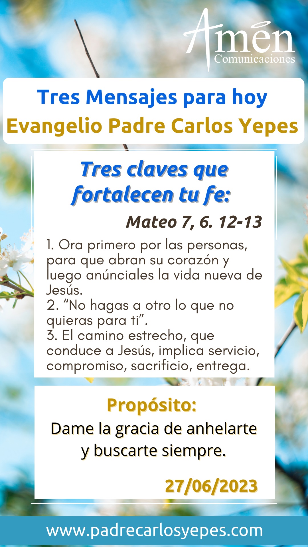 En un hermosísimo texto del capítulo 7 de san Mateo, correspondiente al llamado sermón del Monte, uno de los más grandes discursos de Jesús consignados en las Sagradas Escrituras, encontramos tres bellas enseñanzas para nuestra vida.
