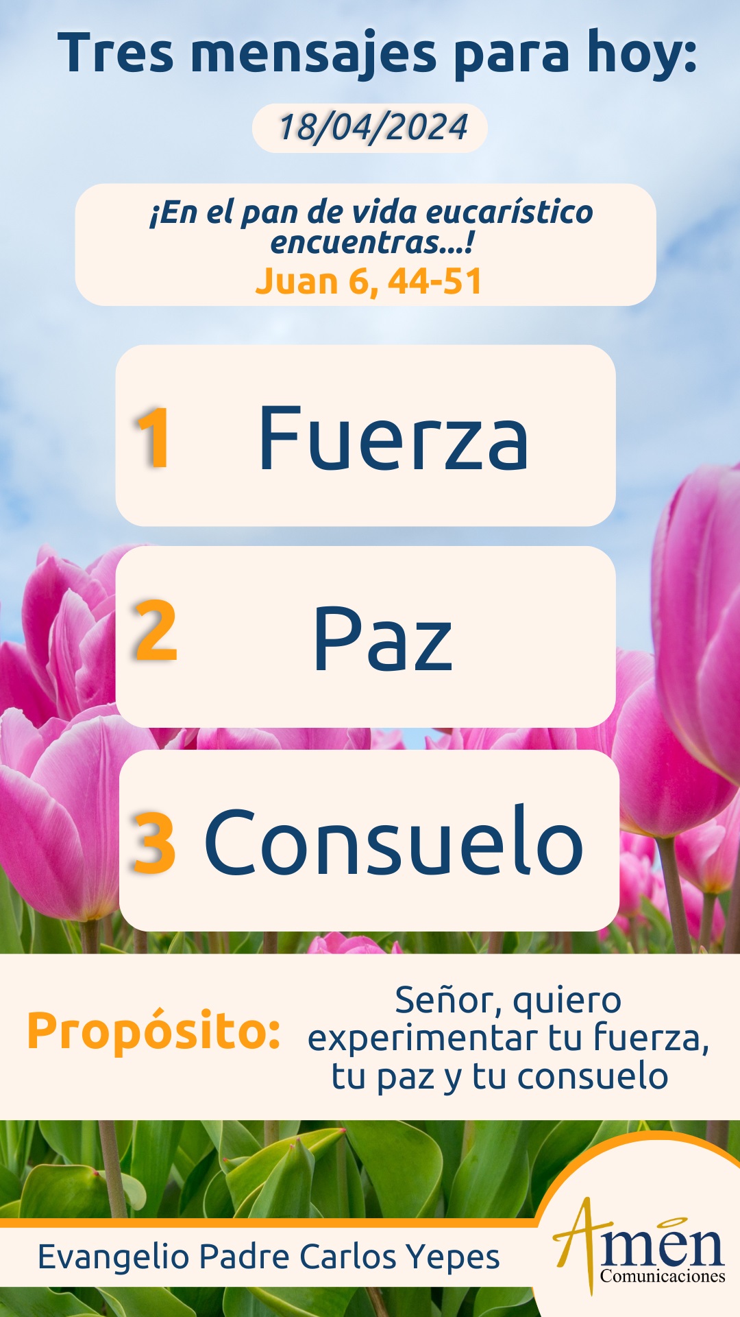 Cuando en el mundo nos aterra la idea de la muerte, cuando es un concepto tabú, cuando no queremos saber del final de nuestra historia, cuando vemos la realidad tozuda de la muerte por las guerras, por las pandemias, por la vejez, por un accidente, por un acto de violencia en nuestras ciudades, siempre tememos esta realidad; pero Jesús, presentándose como el Pan de la vida y pidiéndonos que lo comamos cada día con fe, nos hace una promesa que se cumple: “Vivirás para siempre, eternamente estarás con Dios, no habrá la condenación, ni la muerte eterna de tu alma, de tu vida espiritual”. Medita en esta reflexión, no son palabras lanzadas al vacío, es la experiencia que muchos, miles, millones de cristianos a lo largo de 2000 años de historia de fe, han vivido al comulgar la Eucaristía y encontrar fuerza, mucha fuerza espiritual, en sus momentos de debilidad, al encontrar en la Eucaristía consuelo, mucho consuelo y paz, en sus momentos de tristeza y turbación, y al encontrar luz y guía en sus vidas, cuando nos sentimos desconcertados, confusos, sobre qué decisión importante vamos a tomar en nuestra vida.