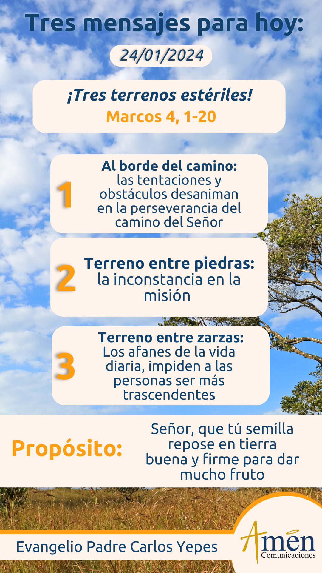 Señor, gracias por este evangelio, gracias por mostrarnos la parábola del sembrador y explicarla tú mismo, pero sobre todo, enséñanos a evangelizar, no a partir simplemente de conceptos, a partir de definiciones de manera abstracta y teórica, sino a evangelizar a partir de historias, de narraciones, de parábolas, que fue el gran método evangelizador, que tú utilizaste para anunciar los secretos y la sabiduría del Reino de los cielos.